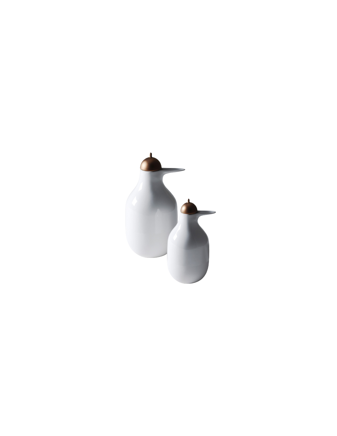 Forme morbide e femminili ispirate all'eleganza del pellicano caratterizzano questo oggetto contenitore. I contorni dell'uccello esotico diventano sottilmente un recipiente in ceramica facile da afferrare che può essere usato per servire acqua, succo, caffè e latte. Umorismo, immaginazione e la migliore tradizione della ceramica si uniscono per dar vita a questo compagno ottimista.