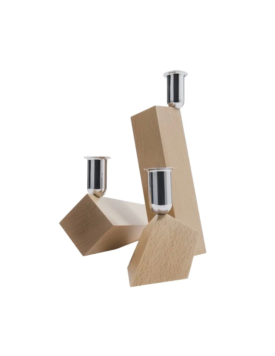 Venezia / Pisa / Torcello sono le tre località italiane con le quali Gilad battezza una collezione di portacandele connotati dalla ricerca sugli opposti: stabilità/instabilità, uno/tanti, superficie/bordo, movimento/stasi. La candela è fissata in equilibrio precario su basi in legno o marmo.