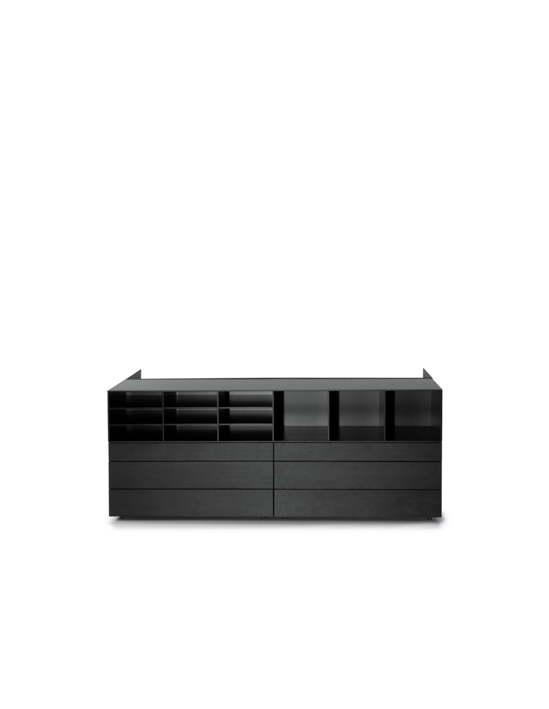 Le cassettiere possono essere accostate tra loro per formare capienti comò singoli o doppi completabili con piani in diverse finiture.