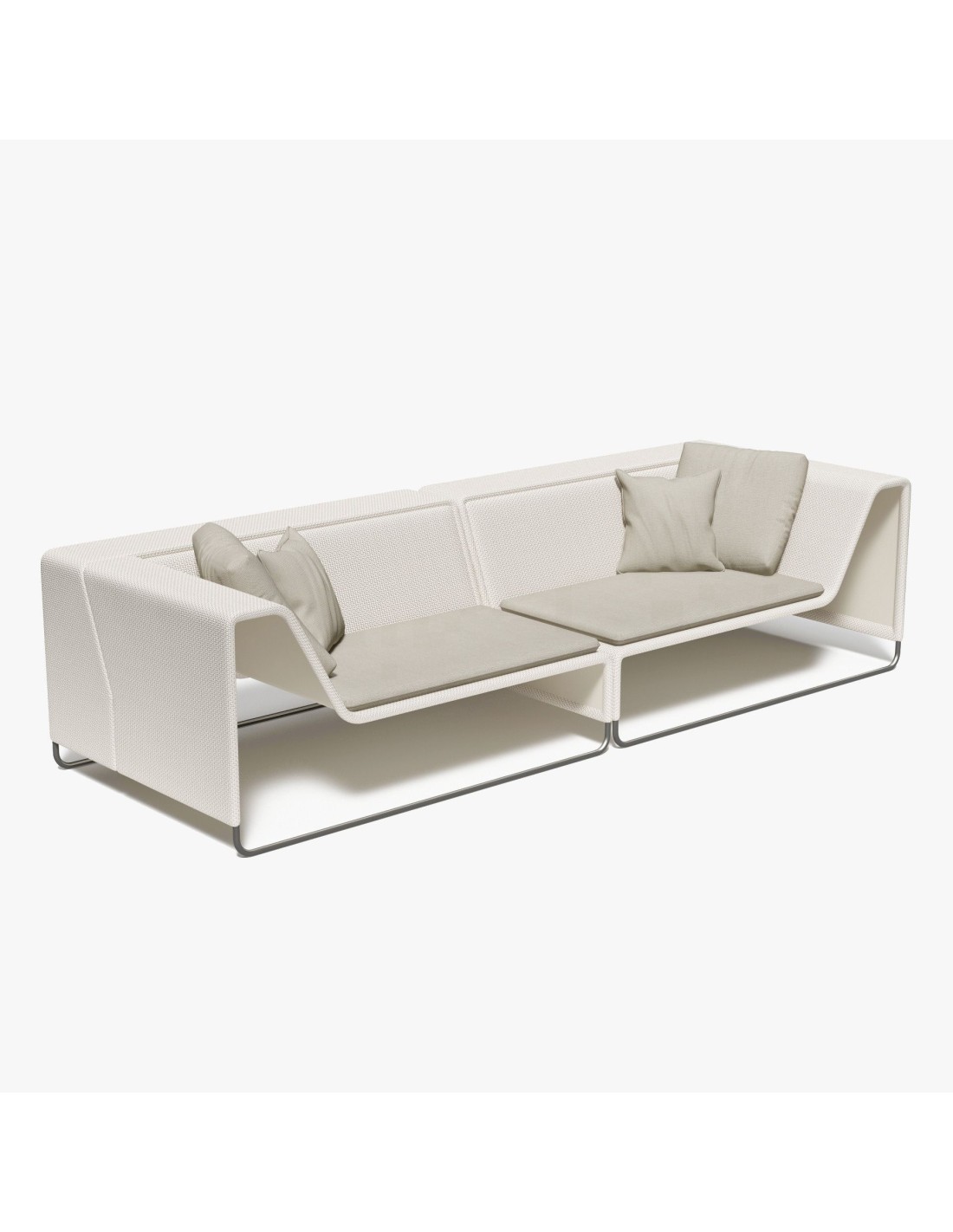 Paola LentiSistema di sedute modulari per ambienti esterni. La struttura, in acciaio trattato con cataforesi e verniciatura poliestere, è rivestita con tessuto Rope, un'esclusiva Paola Len