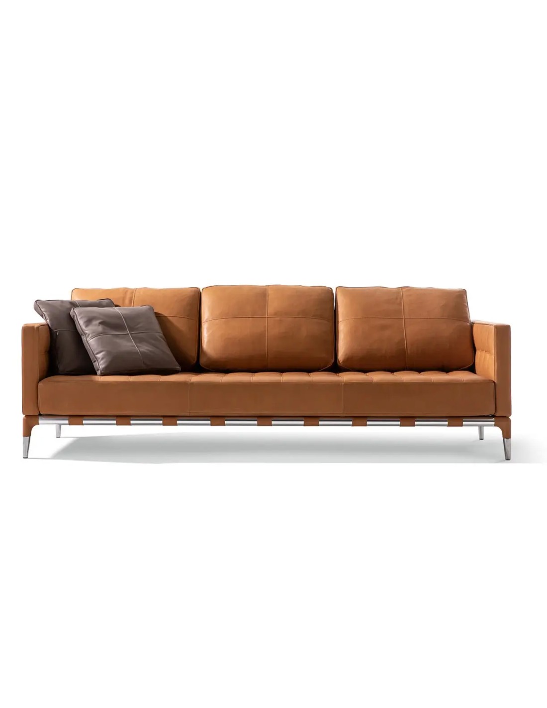 Una famiglia di sedute eleganti e confortevoli, ideali per qualsiasi stile di arredamento, formale o informale, e per soggiorni moderni di qualsiasi dimensione. Stile e trasgressione confluiscono, mescolandosi in un dolce mix di classicità, provocazione e arguzia che contraddistingue tutti i pezzi della famiglia, rivestiti esclusivamente in pelle. Un'innovativa tecnica capitonné di fissaggio dei bottoni è presente sul rivestimento di tutti i diversi pezzi, compreso il divano ad isola extra-large, dotato di due schienali e bracciolo da tavolo.