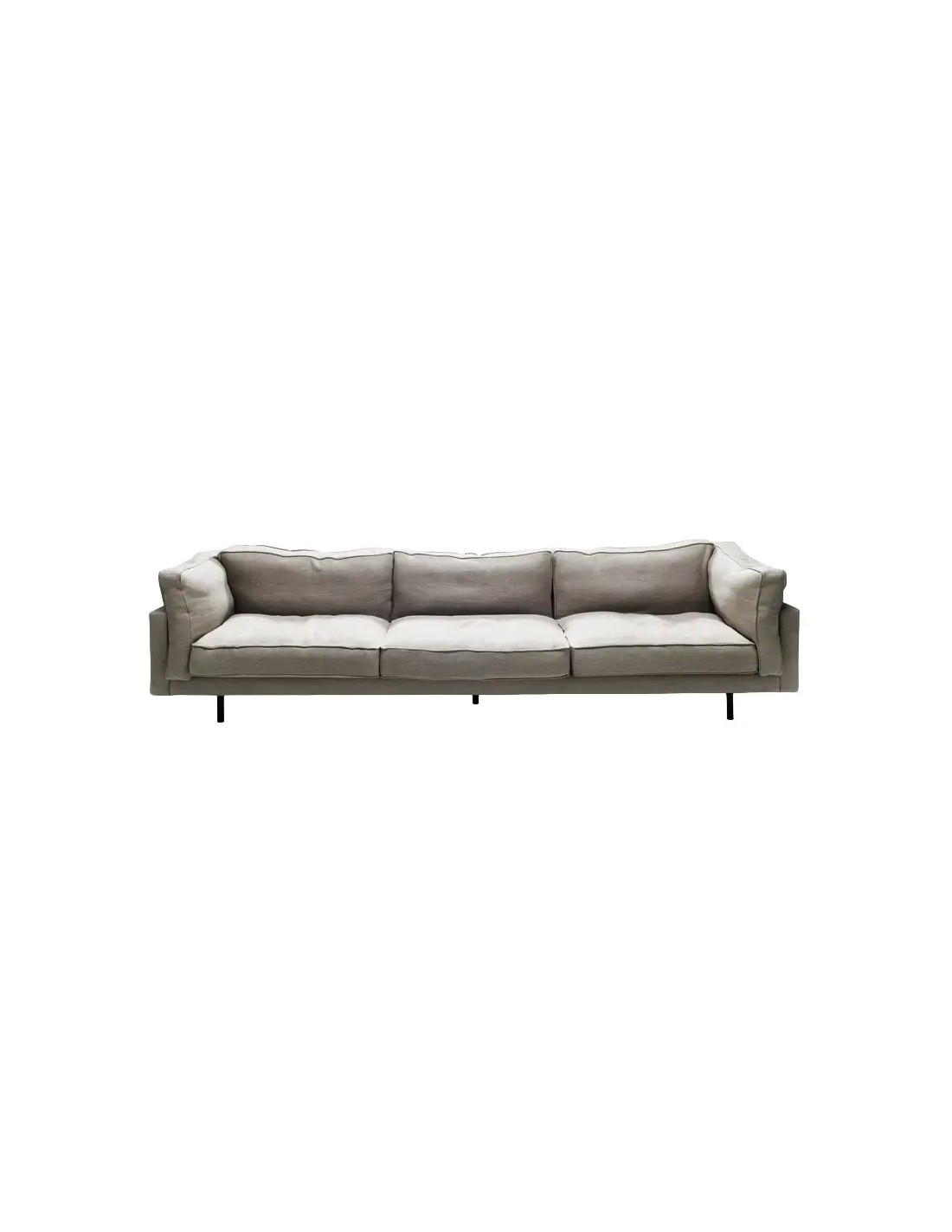 Una seduta particolarmente confortevole, morbida e regolare, piedini sottili, in acciaio, che guardano agli anni Sessanta e profili delineati da cuciture marcate: sia la versione in tessuto che quella in pelle, soprattutto nelle combinazioni modulari, sono perfette per risolvere le tante variazioni del living.