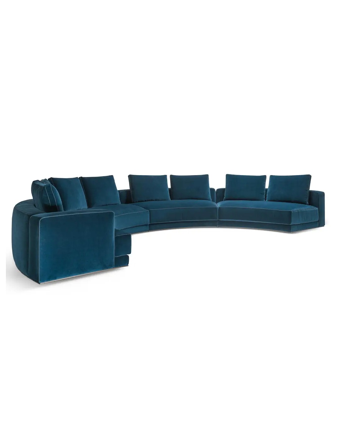 La struttura del divano Augusto si caratterizza per un design unico e armonioso che si adatta perfettamente a diverse tipologie di ambienti, dal living residenziale più classico agli spazi contemporanei più innovativi. La moderna struttura metallica non è solo un elemento estetico ma rappresenta un'innovazione tecnica che garantisce solidità e leggerezza visiva, mentre le sedute imbottite offrono comfort superiore attraverso imbottiture multistrato studiate per il relax prolungato. L'elegante piping che definisce le forme costituisce il segno distintivo di Augusto, creando un linguaggio formale riconoscibile che valorizza ogni dettaglio costruttivo.