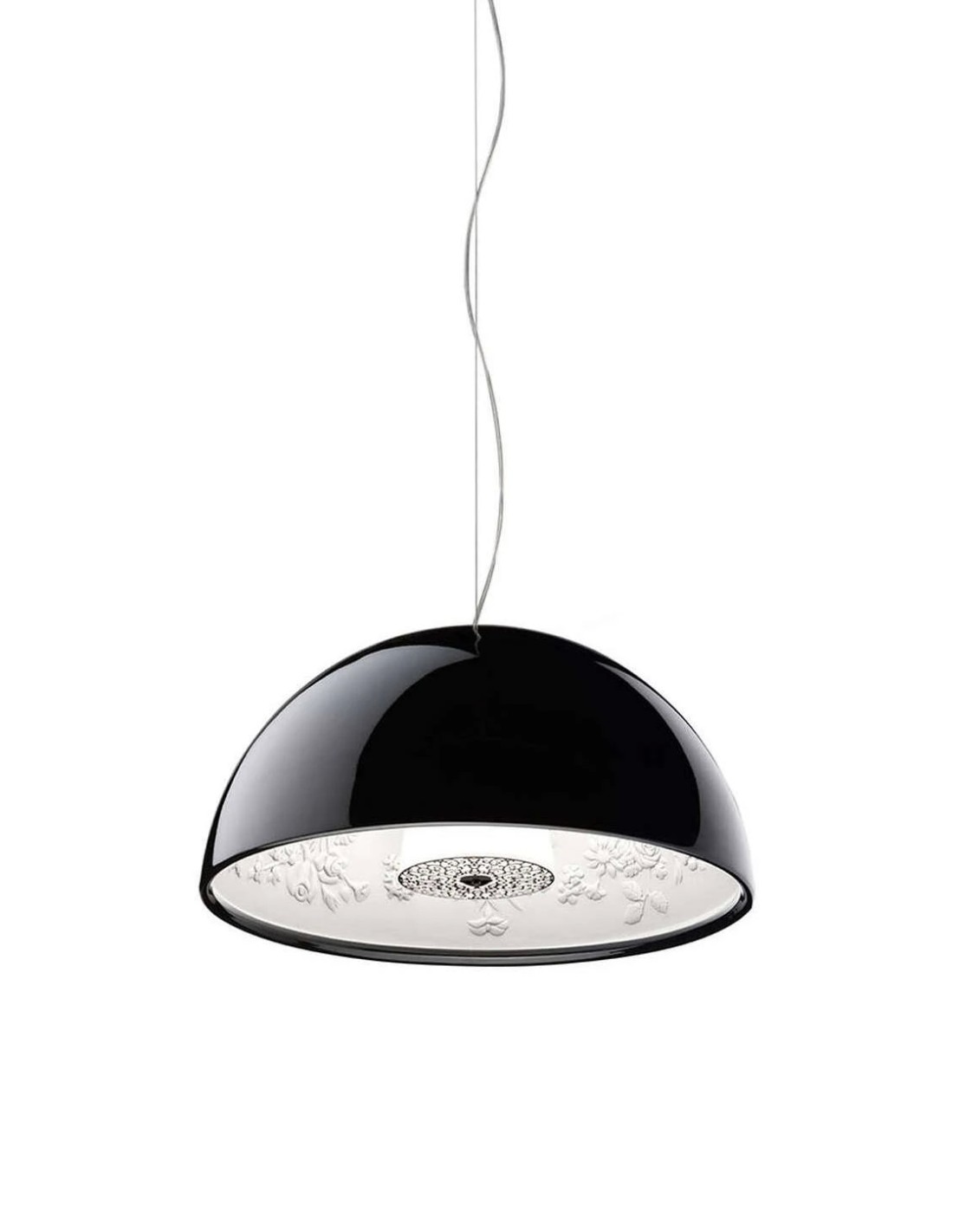 FlosLampada a sospensione a luce diffusa. Cupola in gesso bianca all'interno con finiture esterne color: ruggine, nero lucido, bianco lucido oppure oro opaco.