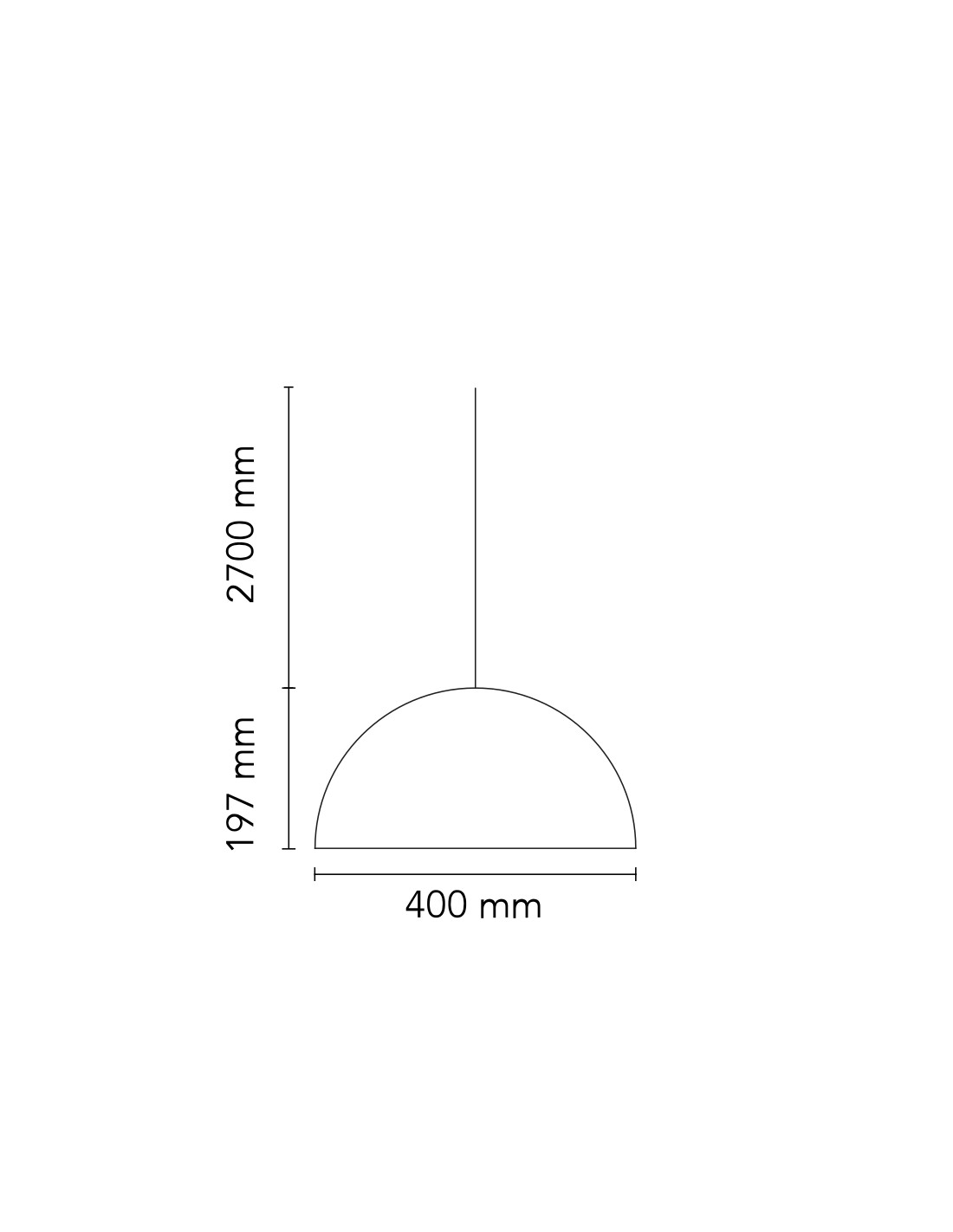 Lampada a sospensione a luce diffusa. Cupola in gesso bianca all'interno con finiture esterne color: ruggine, nero lucido, bianco lucido oppure oro opaco. Supporto cupola in lega di alluminio. Diffusore in vetro opalino soffiato. Fregio in acciaio inox fotoinciso ed imbutito. Rosone in PC nel medesimo colore della cupola.