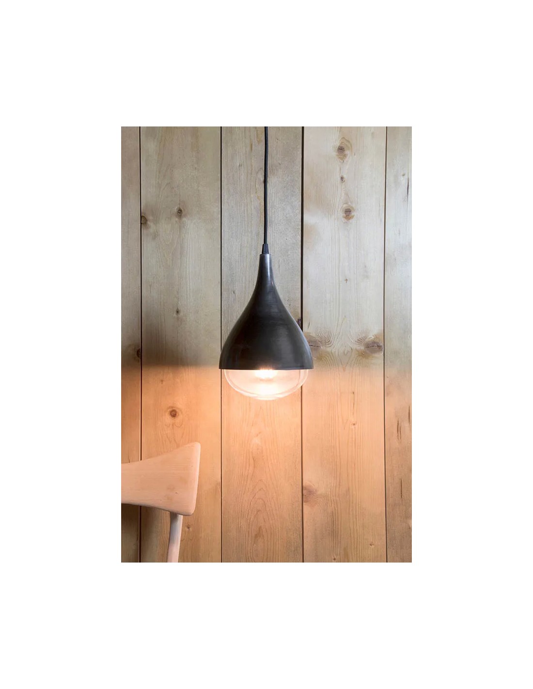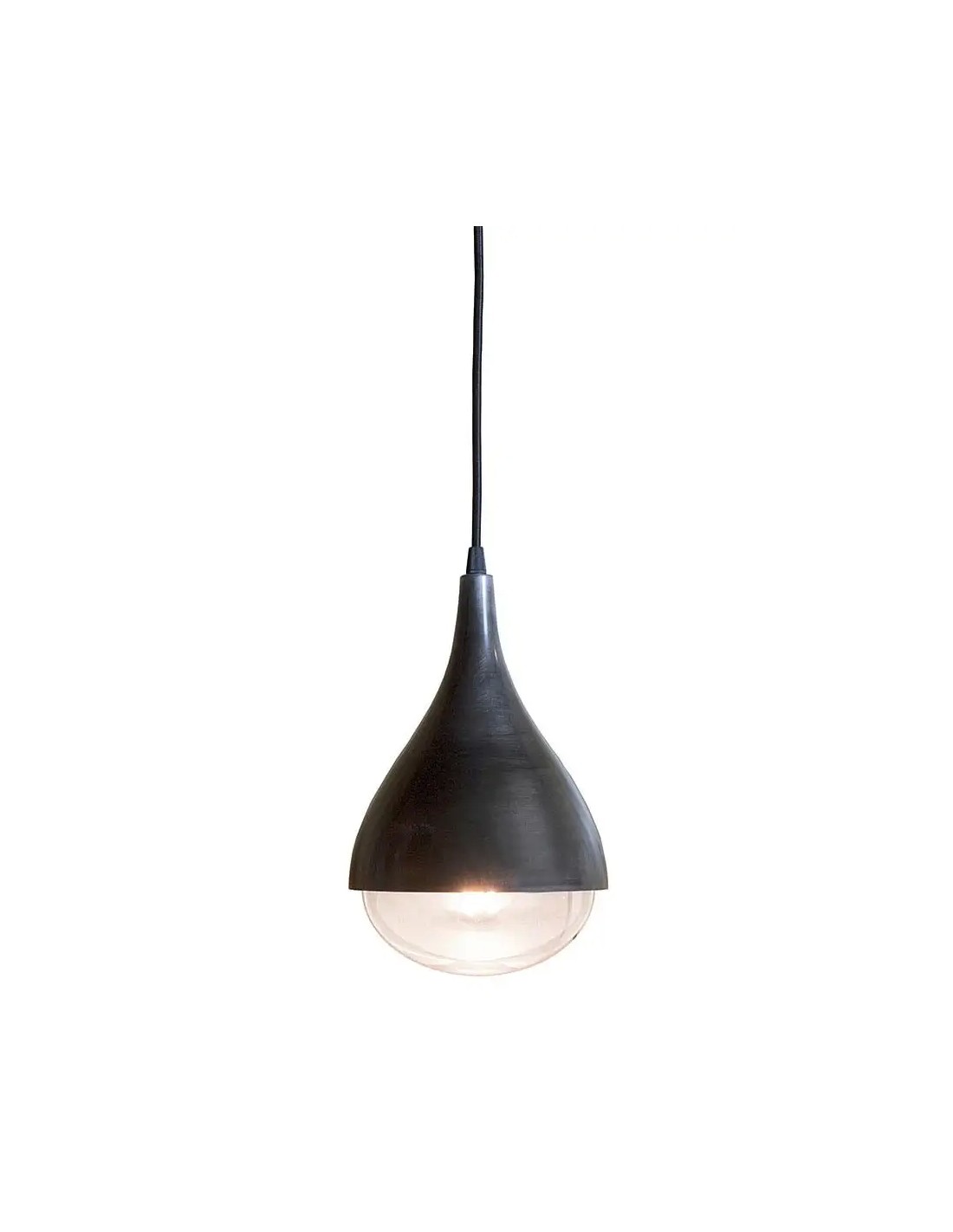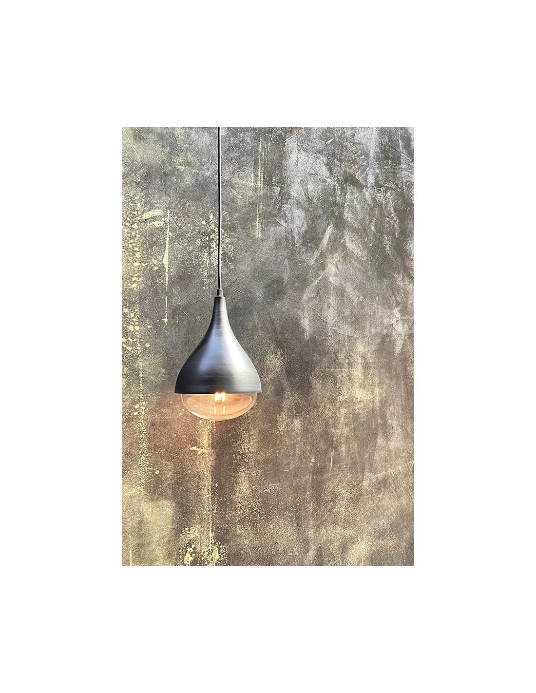 Renzo SerafiniCorpo in alluminio in finitura acidatura scura, cavo di alimentazione tessuto nero, base di fissaggio, lampadina LED inclusa.