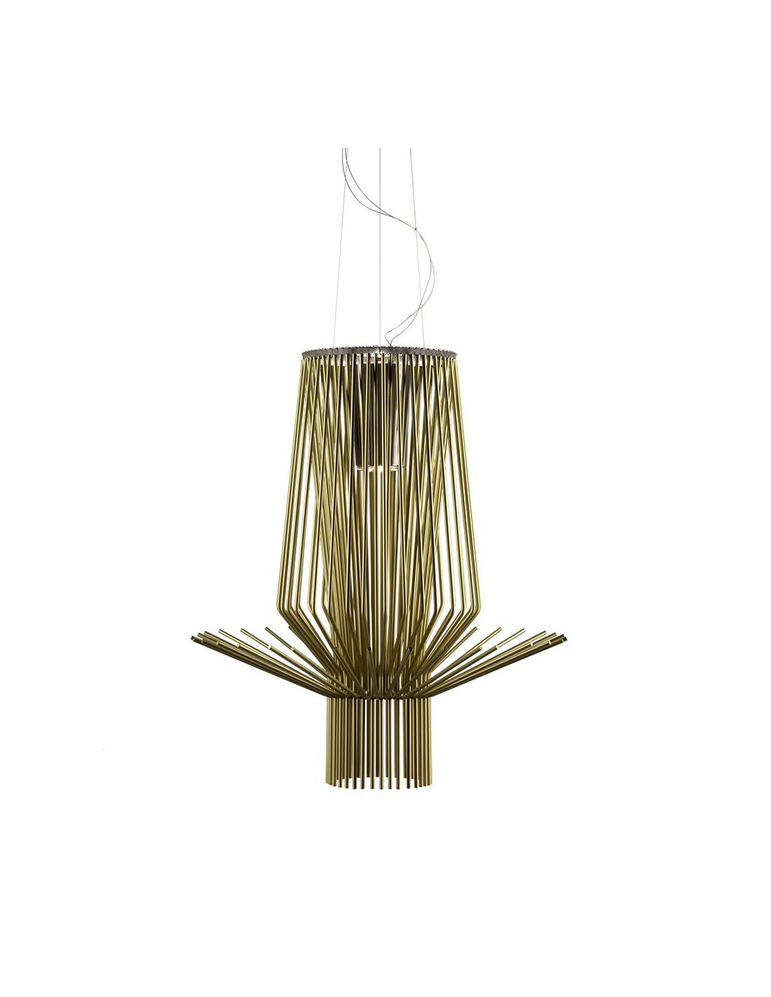 Un modo del tutto speciale di caratterizzare e illuminare uno spazio, le lampade a sospensione Allegro sono un concetto che fonde effetto luminoso e design grafico. Dalle dimensioni davvero importanti Allegro Assai è caratterizzata dal colore oro che ne sottolinea la calda personalità.