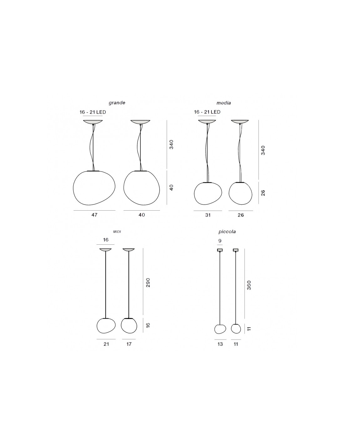 FoscariniForme organiche e poetiche realizzate in vetro soffiato a bocca, per una famiglia di lampade che comprende varie misure, utilizzabili singolarmente o in composizioni multiple.