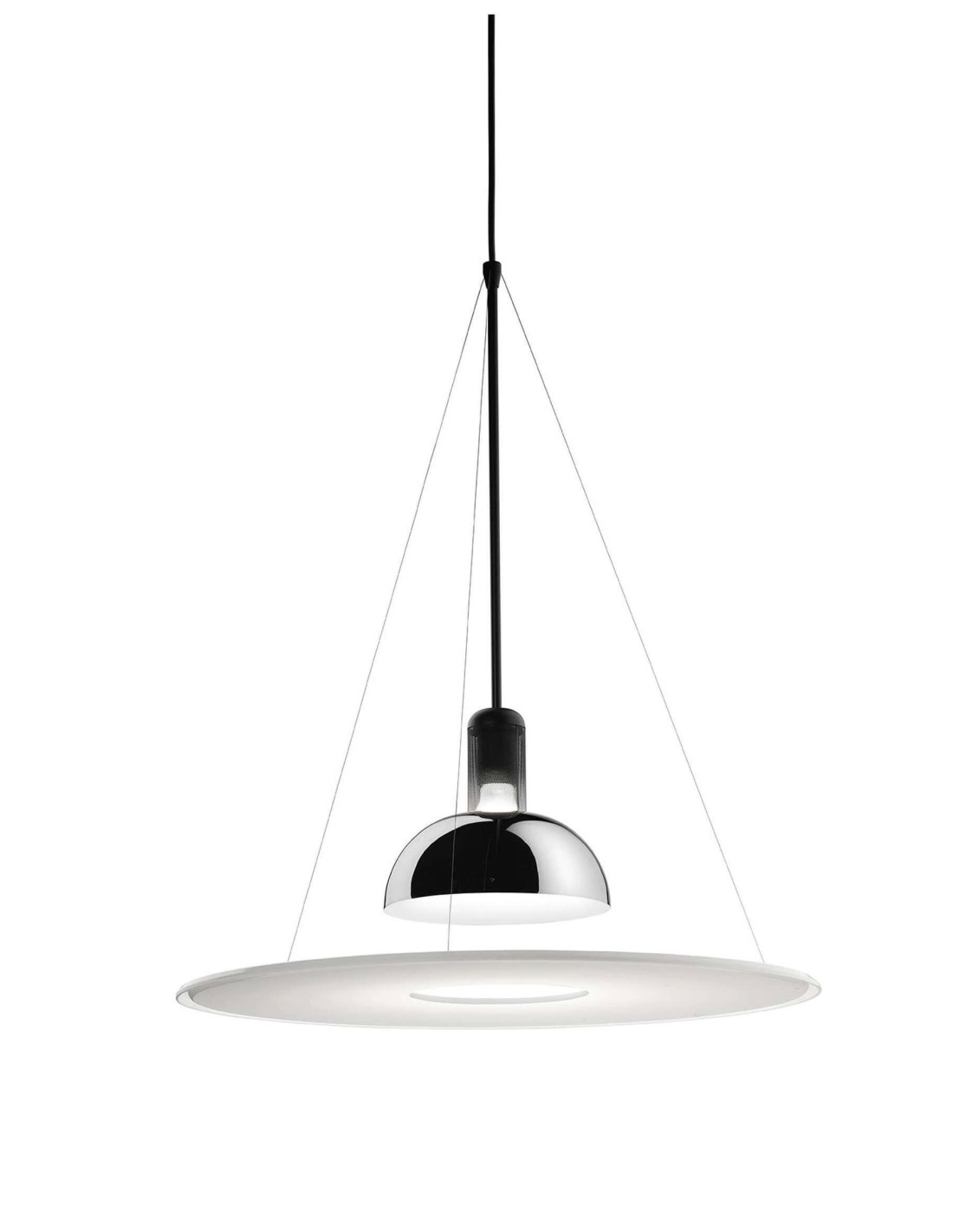 FlosFrisbi Flos, lampada a sospensione ideata dal design Achille Castiglioni in metallo e metacrilato, perfetta per illuminare con originalità living, dining o spazi contract. Un'icona del 1978 che gioca con la luce diretta e indiretta.