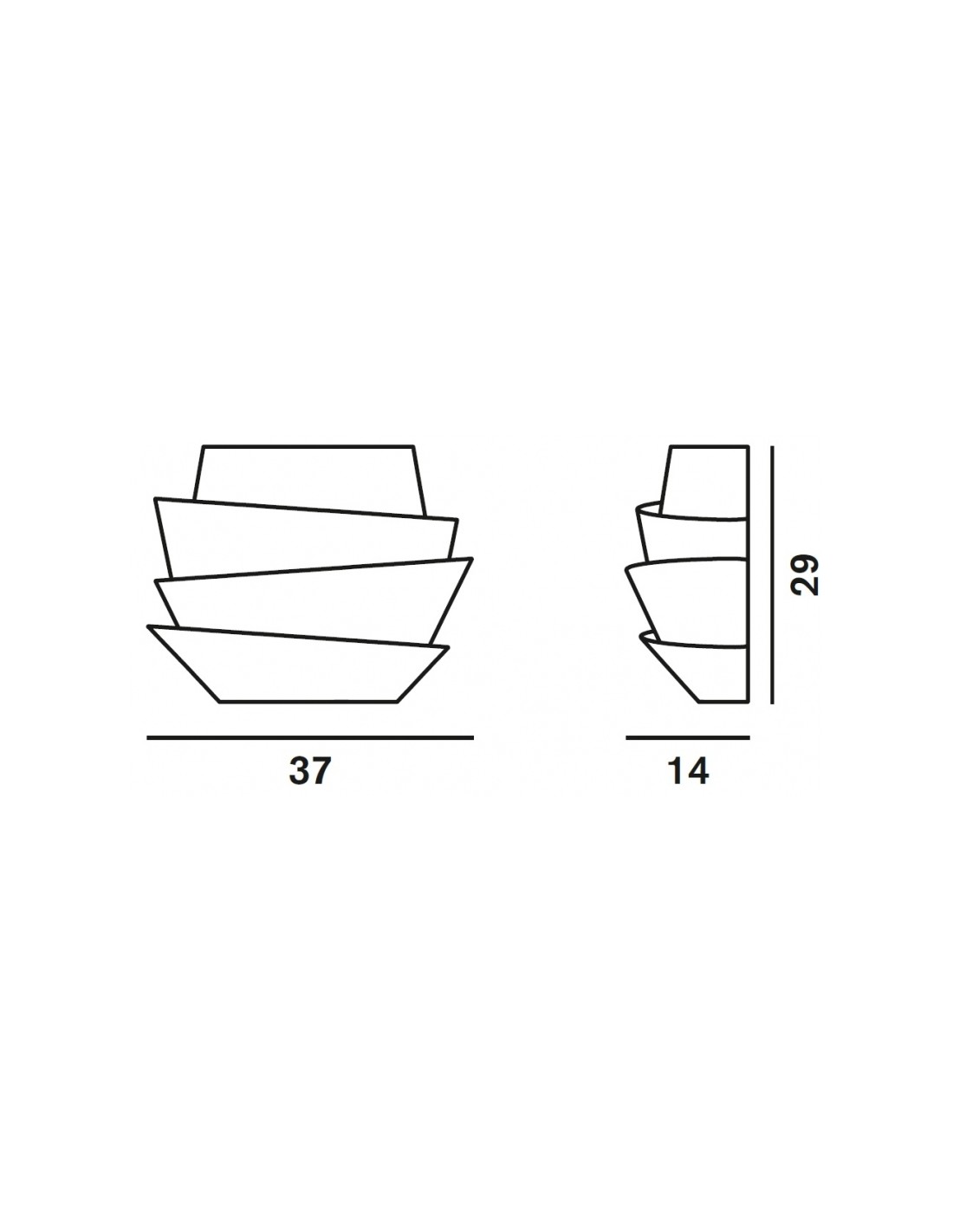 FoscariniIl design composto da fasce asimmetriche, tra le quali filtra una calda luce, dona alla lampada da parete Le Soleil una forte presenza scenica, mantenendo una profondità ridotta.