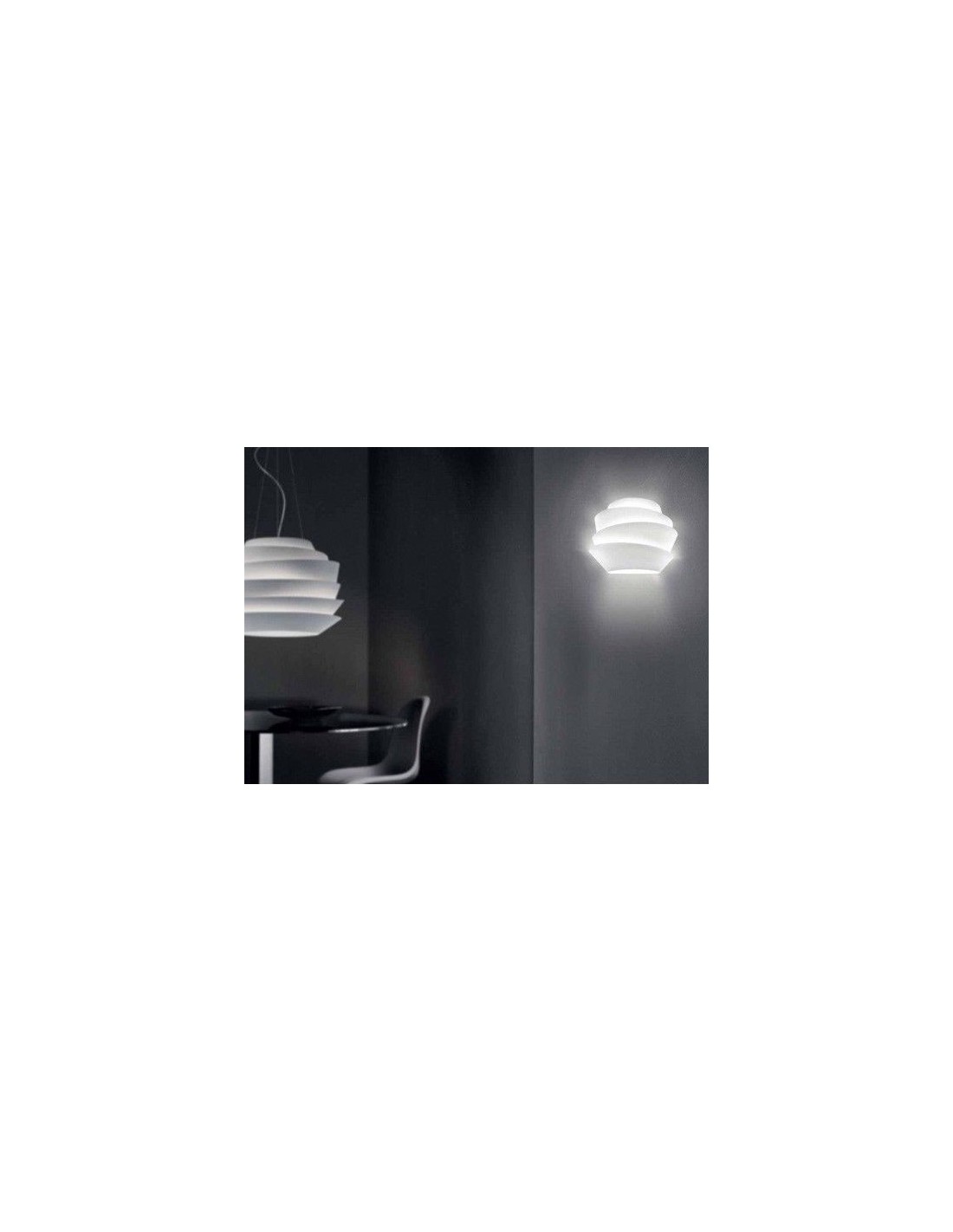Il design composto da fasce asimmetriche, tra le quali filtra una calda luce, dona alla lampada da parete Le Soleil una forte presenza scenica, mantenendo una profondità ridotta.