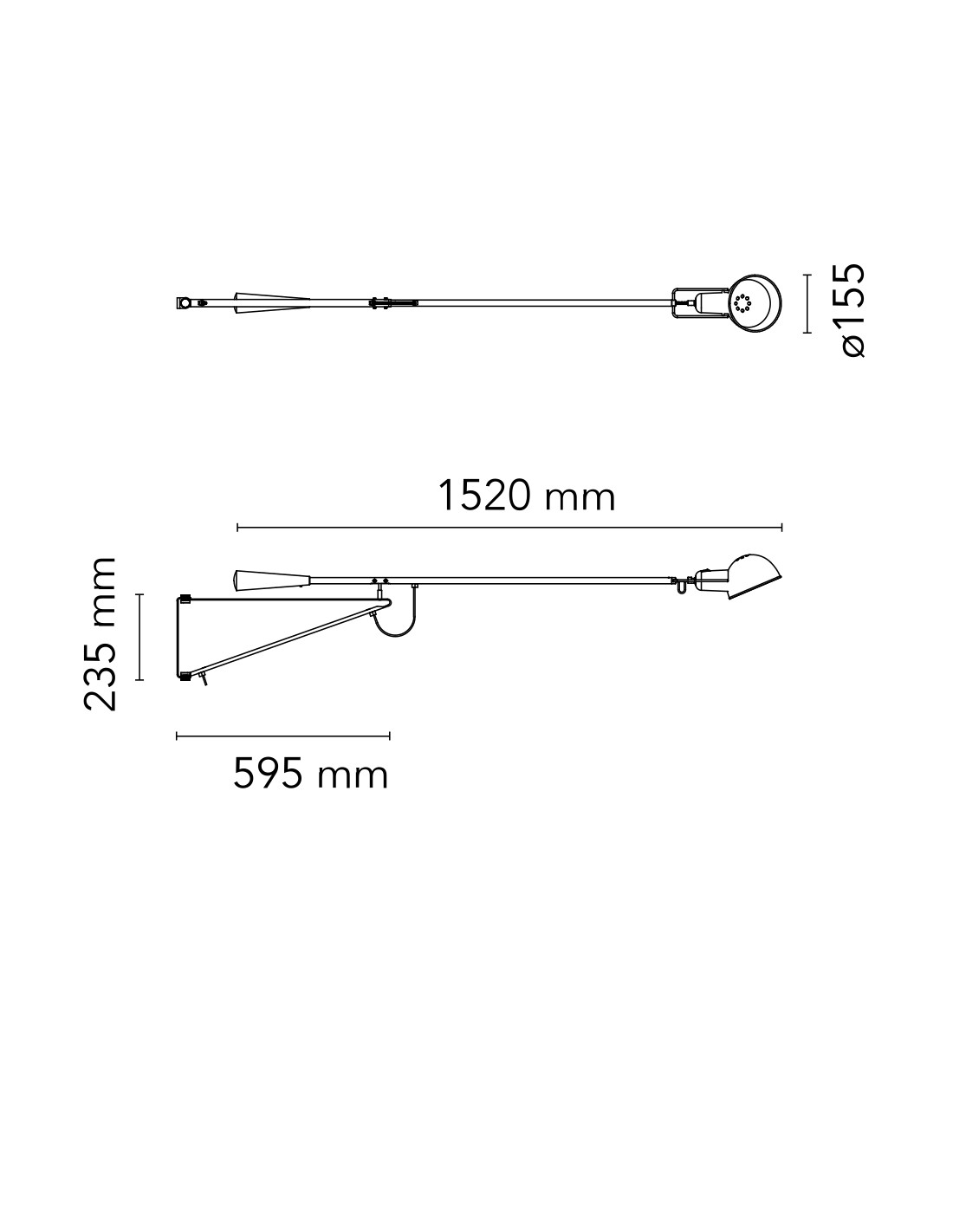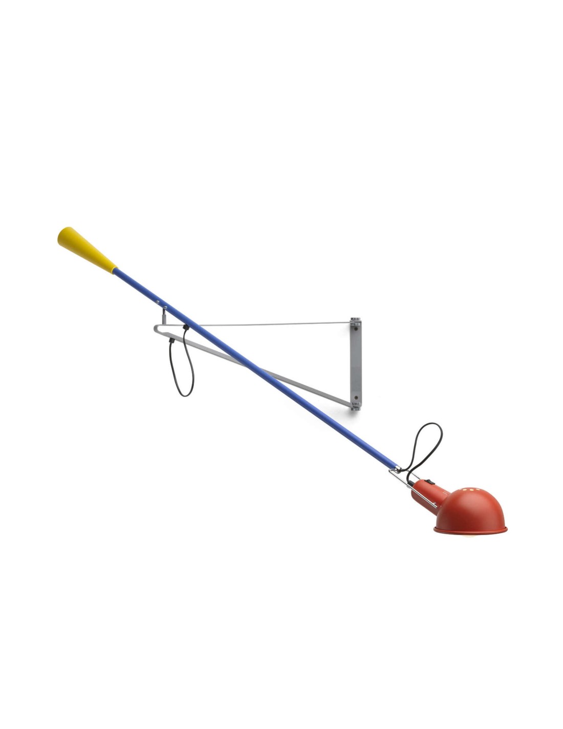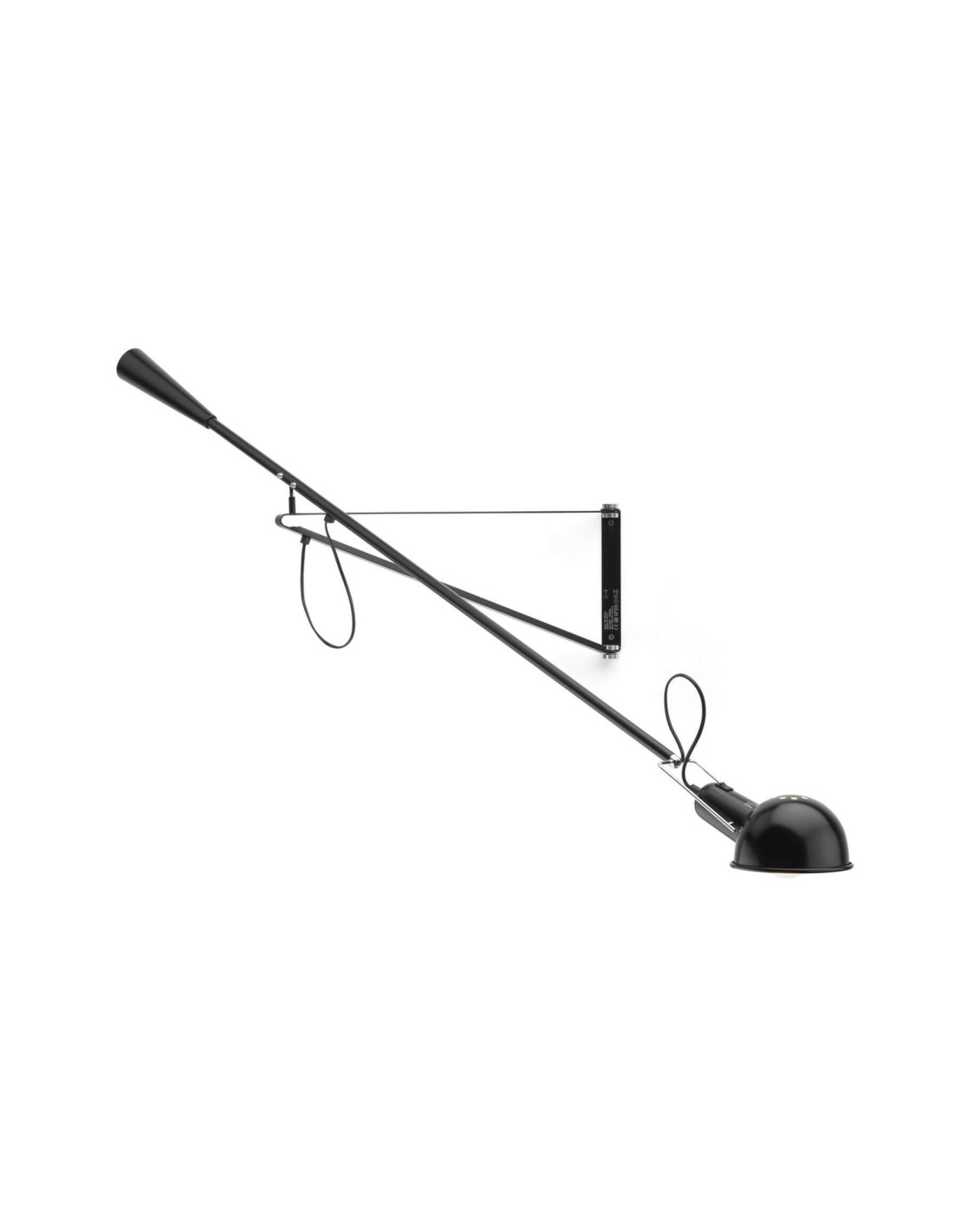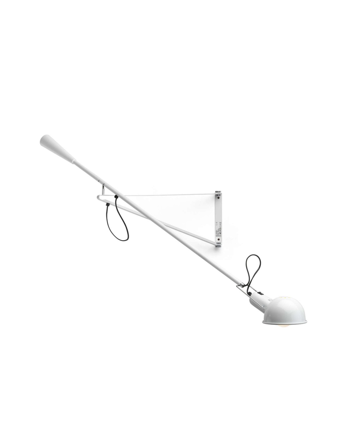 Lampada da parete a luce diretta. Riflettore e braccio orientabile in acciaio verniciati a liquido. Supporto riflettore in ottone cromato. Contrappeso conico in ghisa. Attacco a muro di acciaio verniciato a liquido.