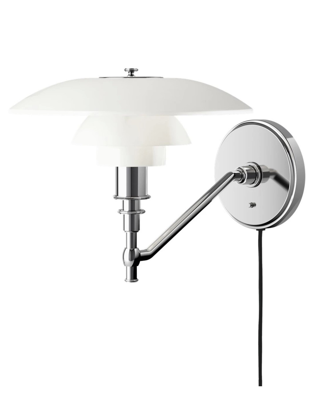 Louis PoulsenL'apparecchio è progettato secondo il principio di una serie di paralumi riflettenti, che dirige la maggior parte della luce verso il basso.