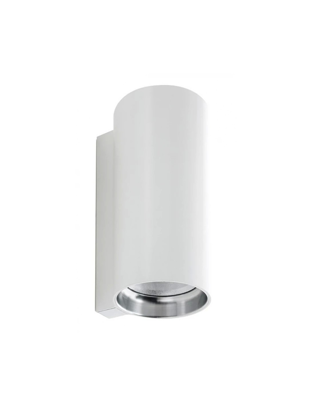 Apparecchi a parete per interni. Il corpo cilindrico si raccorda alla superficie di montaggio in maniera fluida, in un rapporto di continuità con l'architettura. Le ottiche permettono di realizzare diverse soluzioni luminose in molteplici contesti.