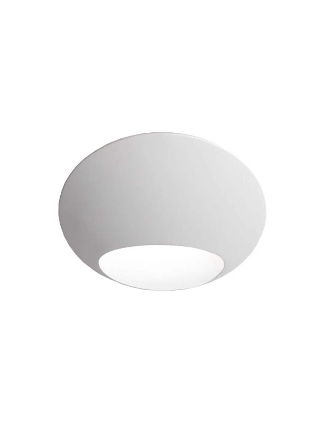 Quando è accesa, la luce del LED rimbalza sulla parete caricando di contrasto la lampada e scivola poi all'interno della bocca, illuminandola e andando a disegnare delicatamente un arco sulla parete. Disponibile in alluminio verniciato a polvere bianco opaco con effetto goffrato, Garbí è una lampada pensata per funzionare anche da spenta perché la sua forma, colpita dalla luce dell'ambiente, evidenzia la sua solidità e le superfici dolci.