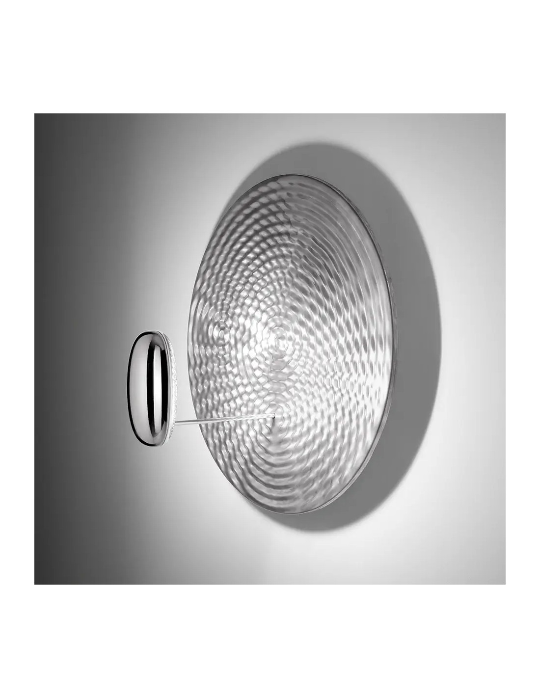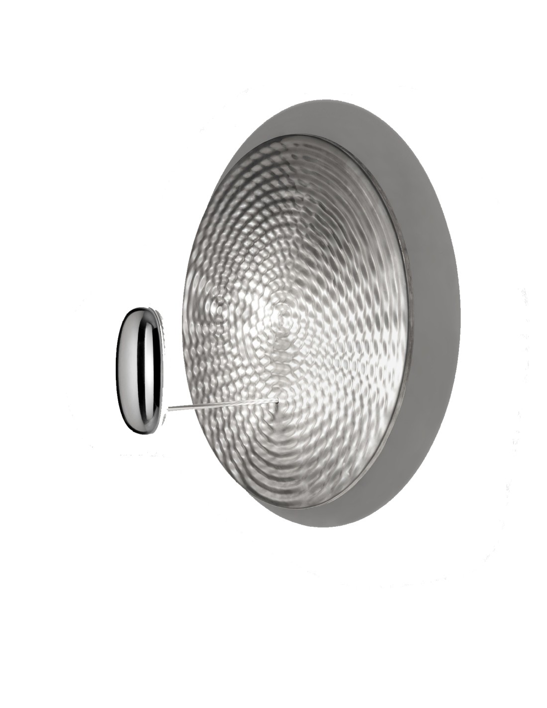 Droplet è una lampada che assomiglia a una pozza di alluminio liquido che riflette tre ciotoli chiari. È stata creata totalmente in digitale e sembra congelare nel tempo le increspature che si incrociano per definire le zone di riflessione, agendo come una forma di liquido dicroico.