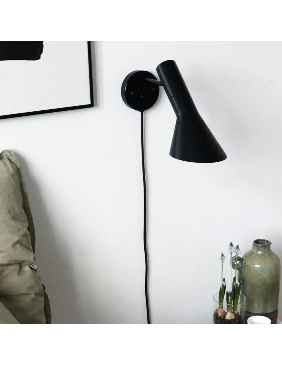 La lampada a parete emette una luce diretta verso il basso. L'angolo dello schermo e la rotazione possono essere regolati per ottimizzare la distribuzione della luce. Lo schermo è dipinto di bianco all'interno per garantire una luce morbida e confortevole.