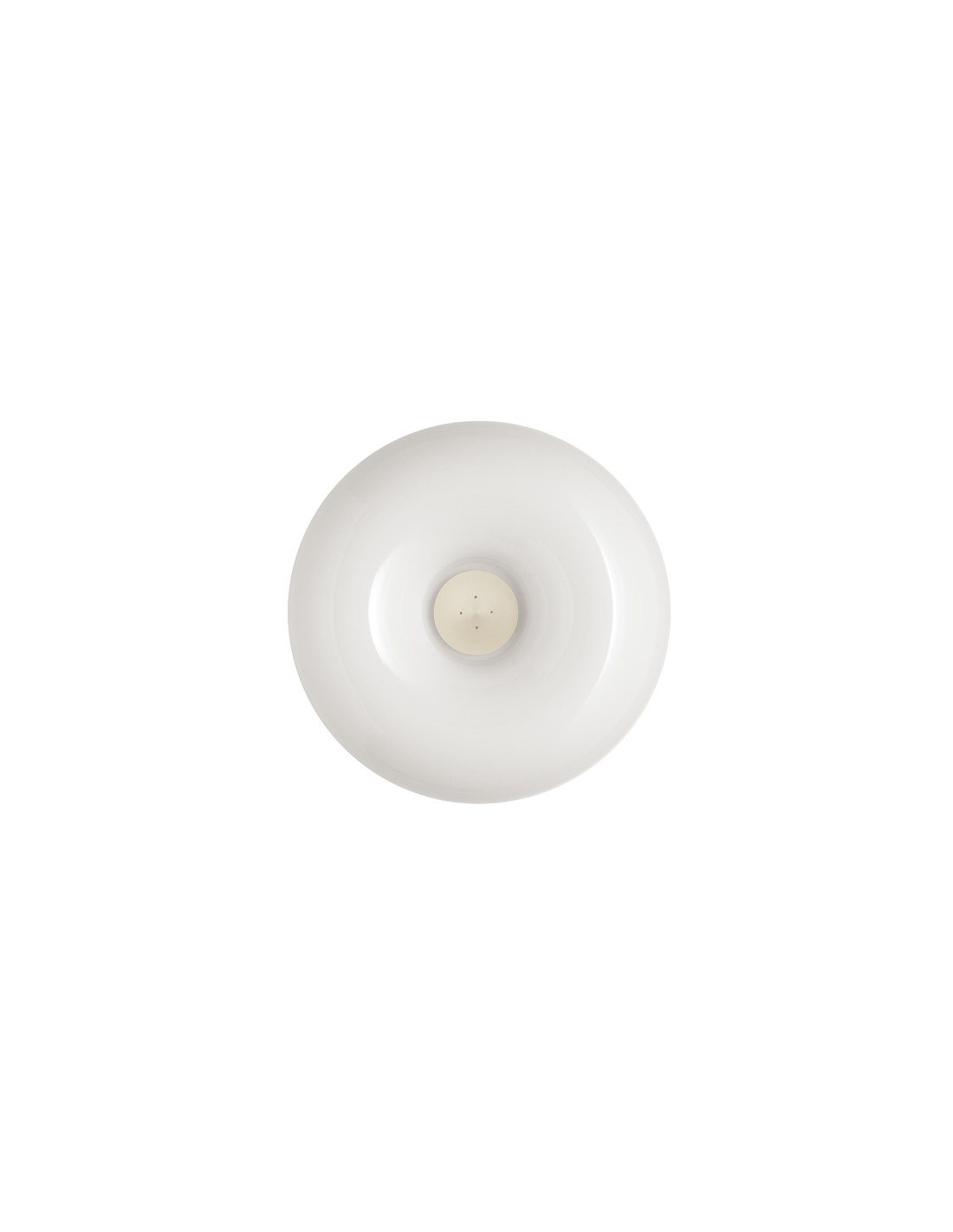 FoscariniUn diffusore in vetro soffiato lucido abbinato al caratteristico bottone in metallo centrale: questa è Circus, lampada da soffitto che crea un caldo e morbido effetto luminoso n