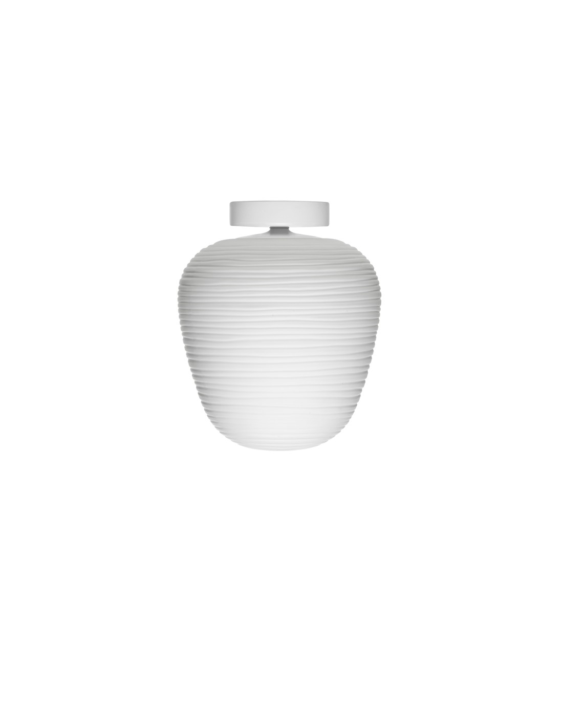 Le lampade da soffitto Rituals traducono la magia luminosa delle lanterne di carta di riso orientali, in forme di design contemporaneo realizzate in vetro soffiato con una particolare lavorazione della superficie. La forma compatta e l'intima luminosità della lampada da soffitto Rituals 3 la rende adatta a una molteplicità di ambienti.