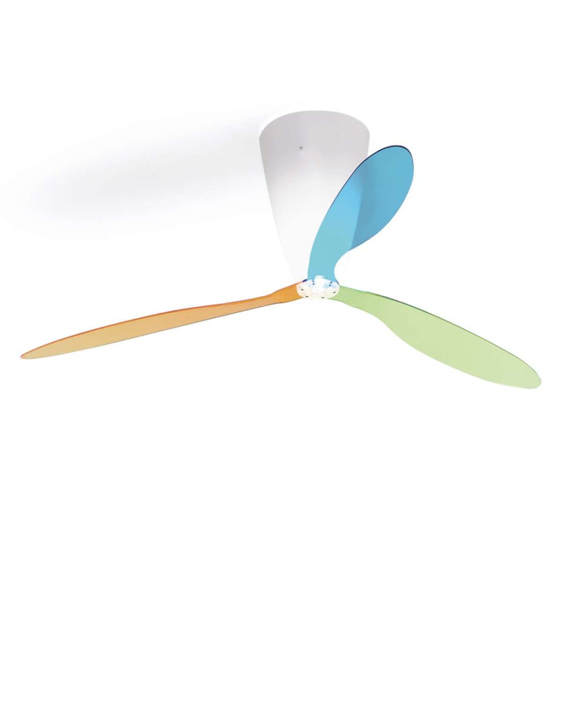 LuceplanLeggero ed essenziale muove l'aria a velocità regolabile e bassissima rumorosità. La rotazione delle pale in metacrilato, colorate e trasparenti, non interferisce con l'emission