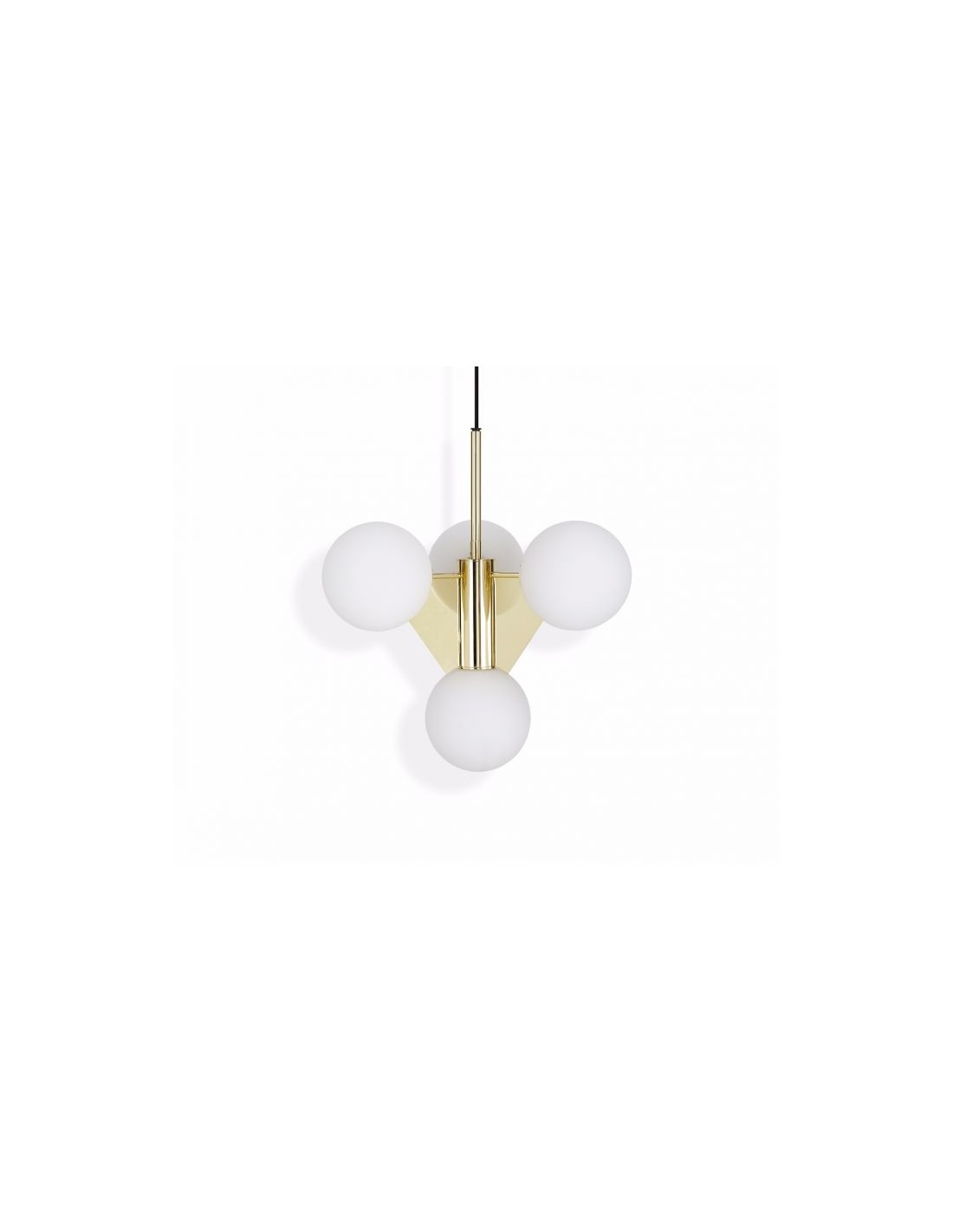Questa versione corta del lampadario Plane mantiene inalterata la teatralità dell'originale. Un telaio in acciaio placcato ottone, su cui si innestano quattro sfere di vetro, crea un elemento di forte personalità per gli ambienti più intimi, perfetto sopra ai tavoli da pranzo, all'interno di ristoranti o in ingressi di piccole dimensioni. Grande effetto visivo anche in file di più lampadari.