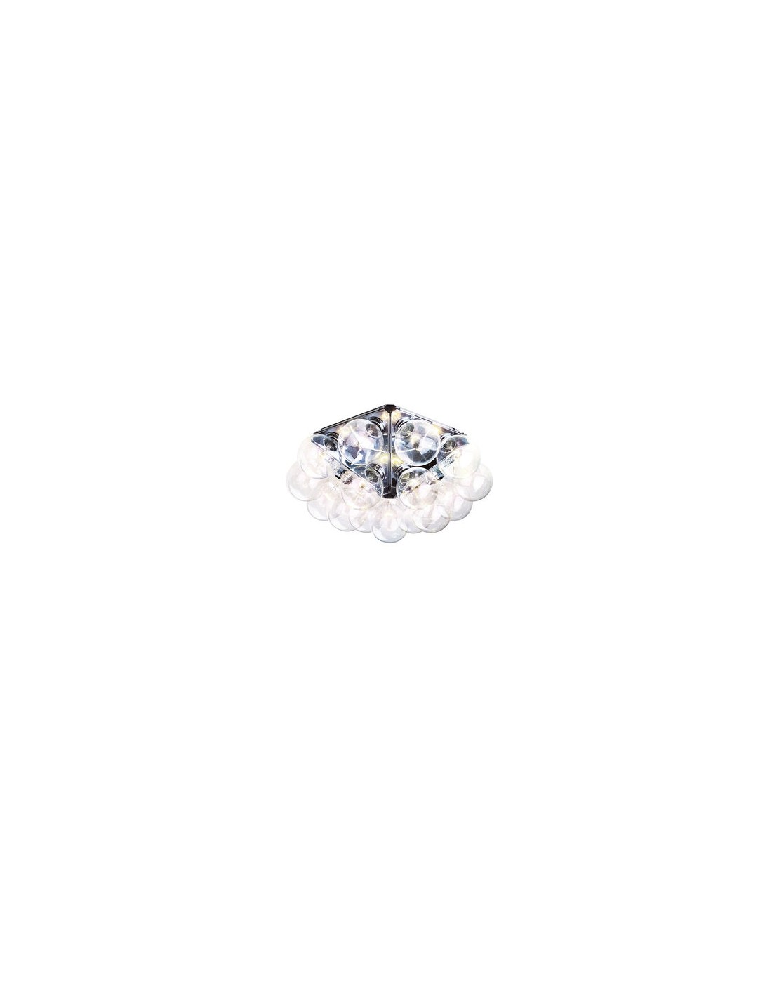 FlosApparecchio di illuminazione da parete/soffitto a luce diretta e riflessa. Struttura composta di 5 triangoli in alluminio lucidato stampato. 15 lampadine Globolux chiare, alloggiano attorno alla struttura. Attacco a parete/ soffitto e rosone di acciaio.