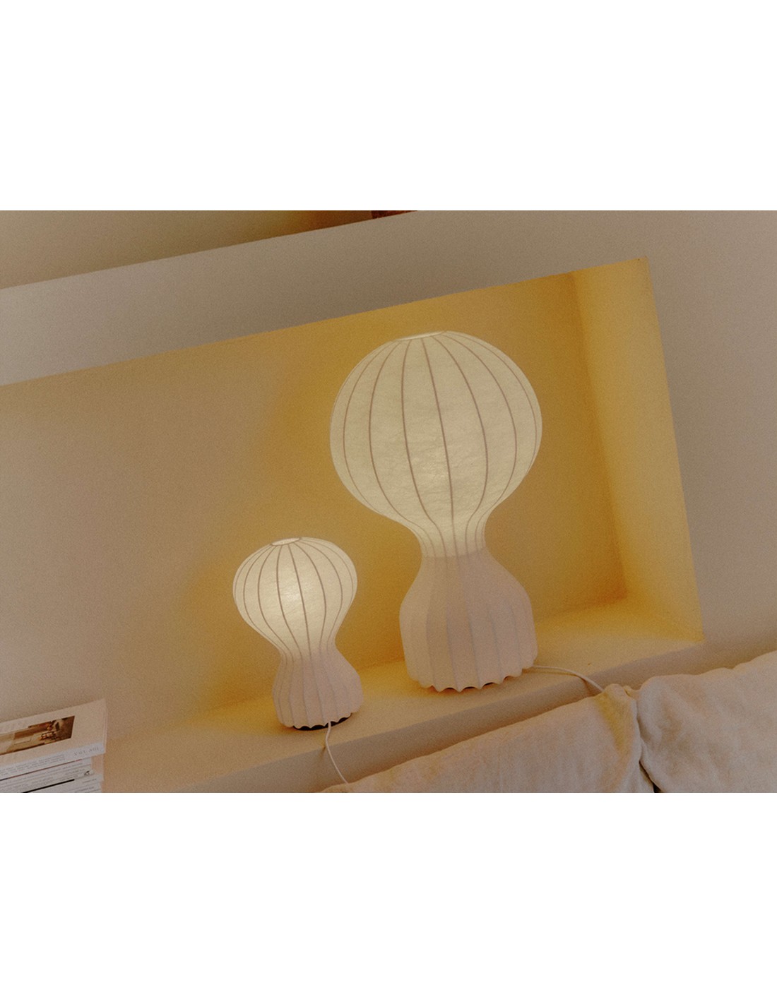 Nata dalla sperimentazione dei fratelli Castiglioni, la Gatto rappresenta una rivoluzione nell'uso dei materiali industriali applicati all'illuminazione domestica. La tecnica del "Cocoon", importata dagli Stati Uniti e perfezionata da Flos negli anni '60, permette di ottenere volumi complessi e leggeri. La struttura interna in acciaio viene avvolta da questa membrana elastica che, una volta solidificata, diventa un diffusore unico, capace di filtrare la luce in modo magico e uniforme.