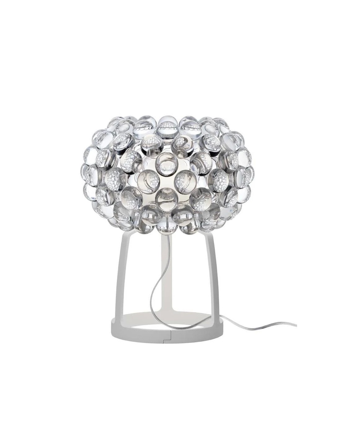 Preziosa e sofisticata come un gioiello, Caboche è una collezione di lampade che conquista lo spazio grazie al suo design leggero e trasparente. Perfetta espressione di un design raffinato e contemporaneo, tipico della Urquiola, la lampada Caboche si ispira al fascino intramontabile delle perle. L'effetto cristallo, che dona al progetto leggerezza e trasparenza, è il risultato dell'insieme di sfere in polimetilmetacrilato fissate ad archetti e diffusori in vetro trasparente. Il risultato è un perfetto gioco di rifrazioni che sprigiona la luce a 360°, diretta sul piano e riflessa al soffitto. La nuova versione Caboche PLUS, rinnovata sia dal punto di vista tecnologico, ottimizzando l'utilizzo del LED su tutta la gamma, sia dal punto di vista estetico, presenta la nuova forma a zig zag degli archetti che consente di ottenere la massima diffusione della luce senza schermarla, mentre il nuovo sistema di fissaggio delle sfere, twist-lock, è più semplice, stabile e offre maggiore trasparenza. Gioiello di creatività e tecnologia Caboche è un best-seller Foscarini. Declinata in numerose versioni e dimensioni è perfetta per dare valore e funzionalità a qualsiasi ambiente, domestico o contract.