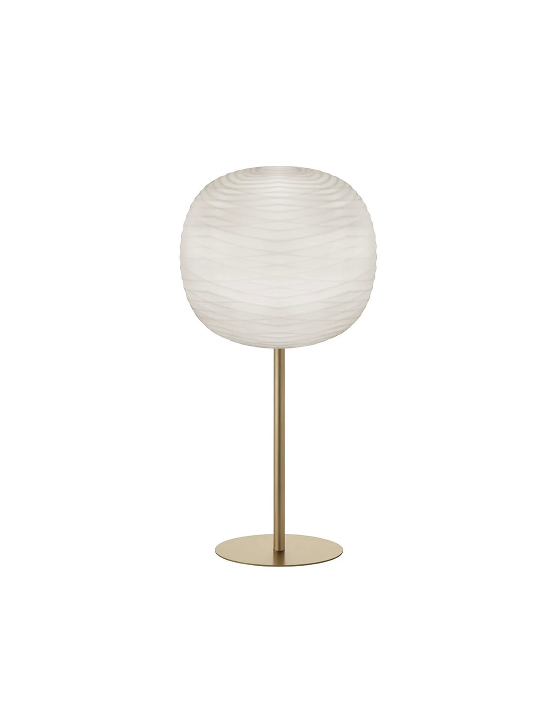 FoscariniIl vetro di Gem dichiara a prima vista la preziosità del materiale: ha un pattern grafico caratterizzato da onde che si rincorrono sulla sua superficie e rendono la lampada inconfondibile anche da spenta.
