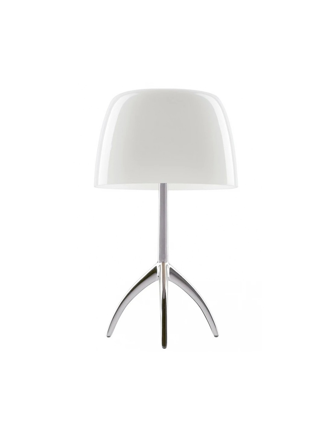FoscariniRilettura in chiave contemporanea della classica abat-jour, la lampada da tavolo Lumiere è diventata un’icona di design contraddistinta dal prezioso diffusore in vetro soffiato unito a un inconfondibile treppiede in alluminio.