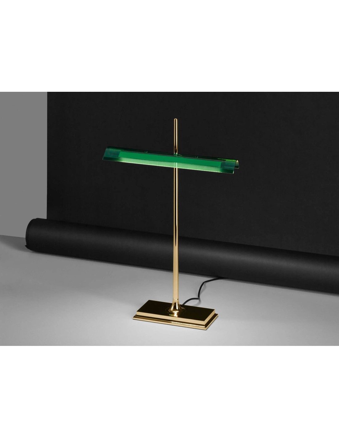 Apparecchio di illuminazione da tavolo a luce diretta. Struttura in alluminio con diffusore esterno in metacrilato trasparente e diffusore led in PC opalino. Interruttore ottico sulla base dimmerabile con tecnologia "Soft Touch". Una presa USB posizionata sul retro della base permette la ricarica dei più comuni smartphone e tablet (max 1,5A). L'alimentatore è su spina con plug intercambiabili. Il cavo di alimentazione è lungo 2,5 metri.