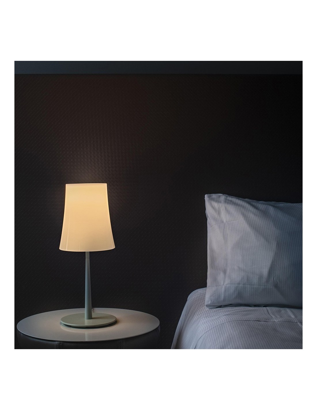l design poetico di Birdie guadagna in essenzialità diventando più accessibile e straordinariamente versatile. Birdie Easy è la versione "entry level" della serie Birdie tavolo, che a differenza delle versioni originali non ha il ramo lungo lo stelo, sotto il diffusore, e non sono dotate di dimmer, hanno invece interruttore on/off sul cavo di alimentazione. Lampada da tavolo a luce diffusa ideale per comodini.