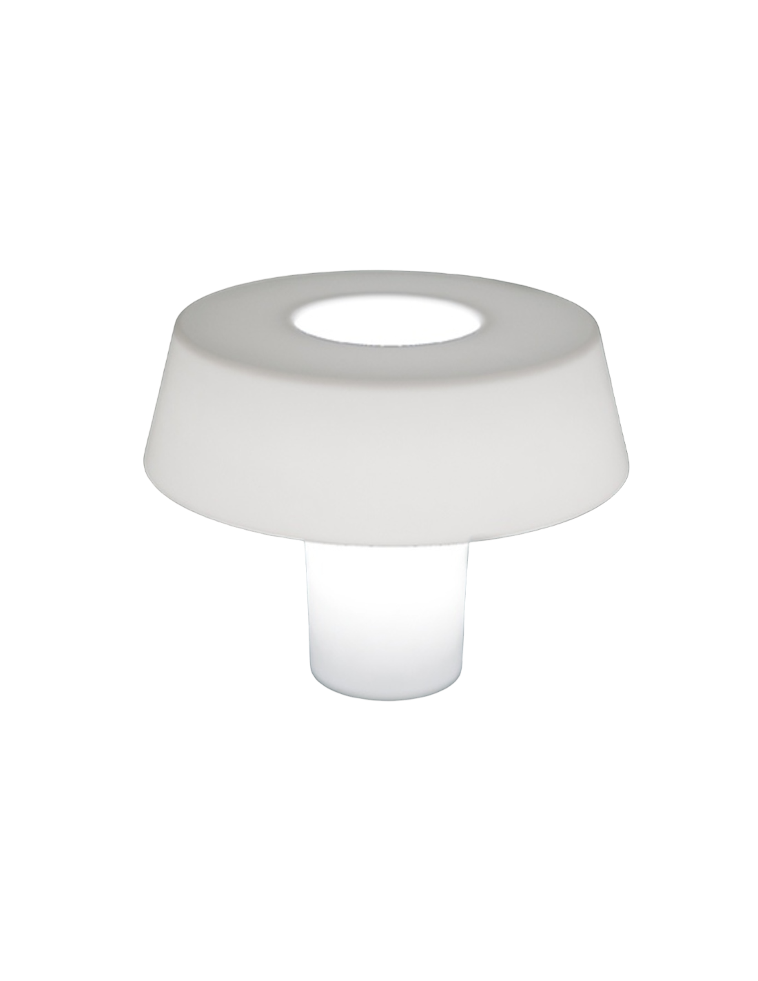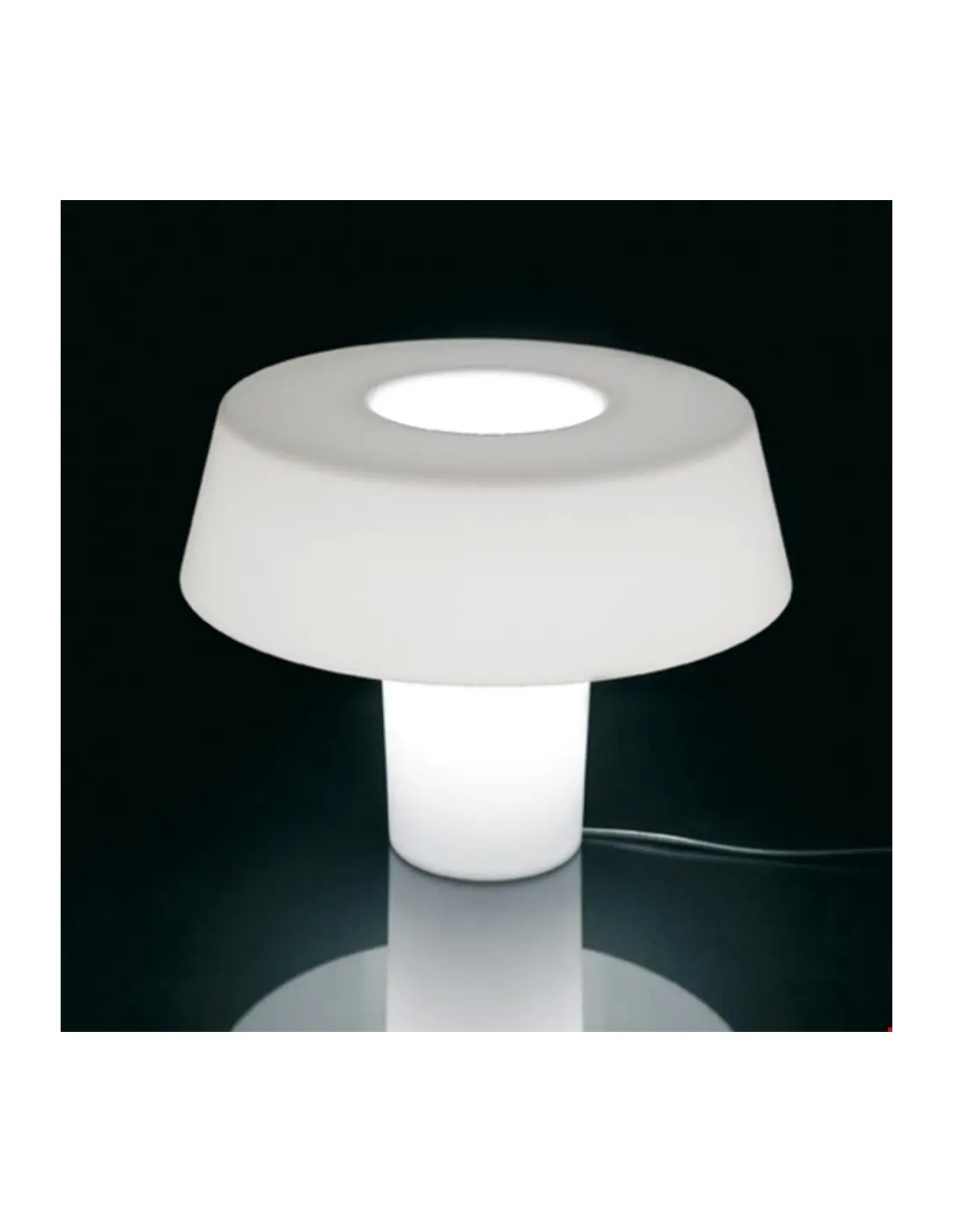 La struttura è interamente realizzata in materiale plastico opalino con una finitura satinata che al tatto ricorda la seta. Quando è accesa, la lampada Amami diventa un corpo luminoso omogeneo, ideale come lampada d'atmosfera in camera da letto o su una madia nella zona living. Il suo design senza tempo la rende un complemento d'arredo versatile, capace di integrarsi sia in interni minimalisti che in spazi più classici.