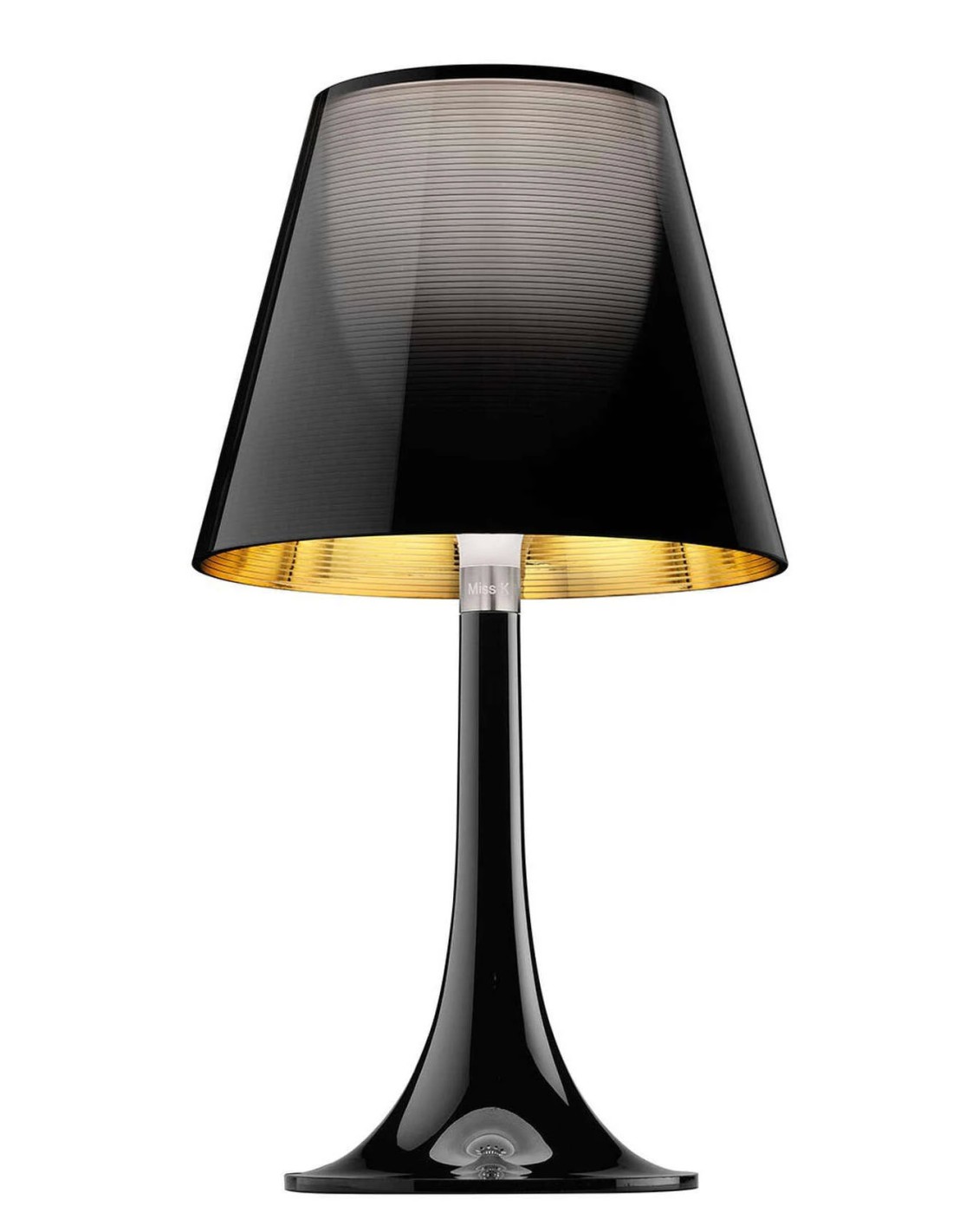Apparecchio di illuminazione da tavolo a luce diffusa. Corpo in PMMA (polimetilmetacrilato) completamente trasparente stampato ad iniezione; diffusore interno in PC (policarbonato) opalino stampato ad iniezione e diffusore esterno in PC(policarbonato) trasparente o colorato stampato ad iniezione alluminato - sulla superficie intera - con processo di alluminatura sottovuoto all'interno.