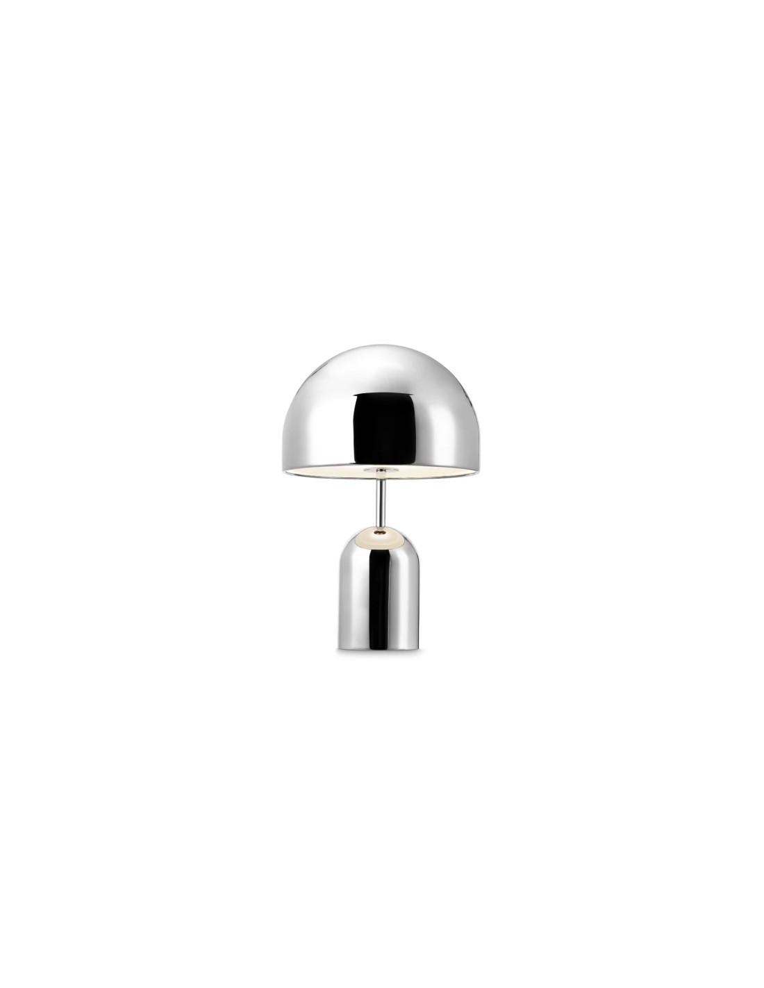 Tom DixonPrendendo il nome da una classica forma a cupola, Bell è un esercizio di riduzionismo. La superficie iperlucida permette a Bell di assumere il tono e le caratteristiche dell'ambiente circostante mentre un diffusore nascosto produce la sua luce morbida.