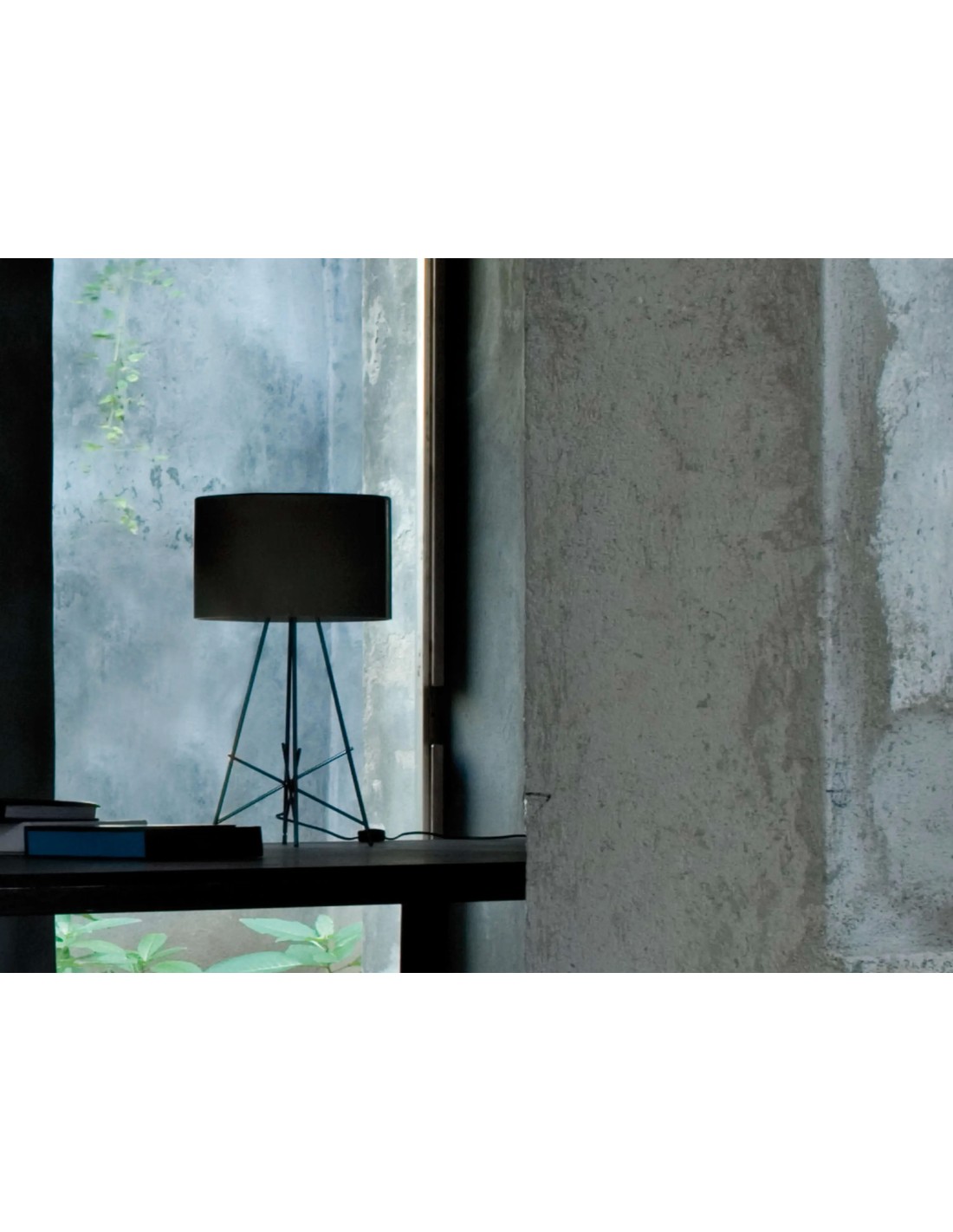 Apparecchio di illuminazione da tavolo a luce diffusa. La struttura di supporto dell'apparecchio è in tubolare di acciaio diametro 10mm saldato, spazzolato e cromato. Disco supporto diffusore in lega di Zama pressofusa lucidata e cromata. Copertura portalampada in PA6 (Nylon) stampato di colore bianco ad iniezione. Diffusore interno in PC (policarbonato) stampato ad iniezione di colore opalino al 3 percento. Piedini in PVC (polivinilcloruro) elastico stampato ad iniezione trasparente. Diffusori in alluminio torniti in lastra e verniciati all'interno di colore bianco ed esternamente di colore bianco lucido o nero lucido, oppure in vetro grigio incamiciato e soffiato a bocca con finitura esterna lucida. Sul cavo è presente il dimmer elettronico che consente la regolazione a step dell'intensità luminosa.