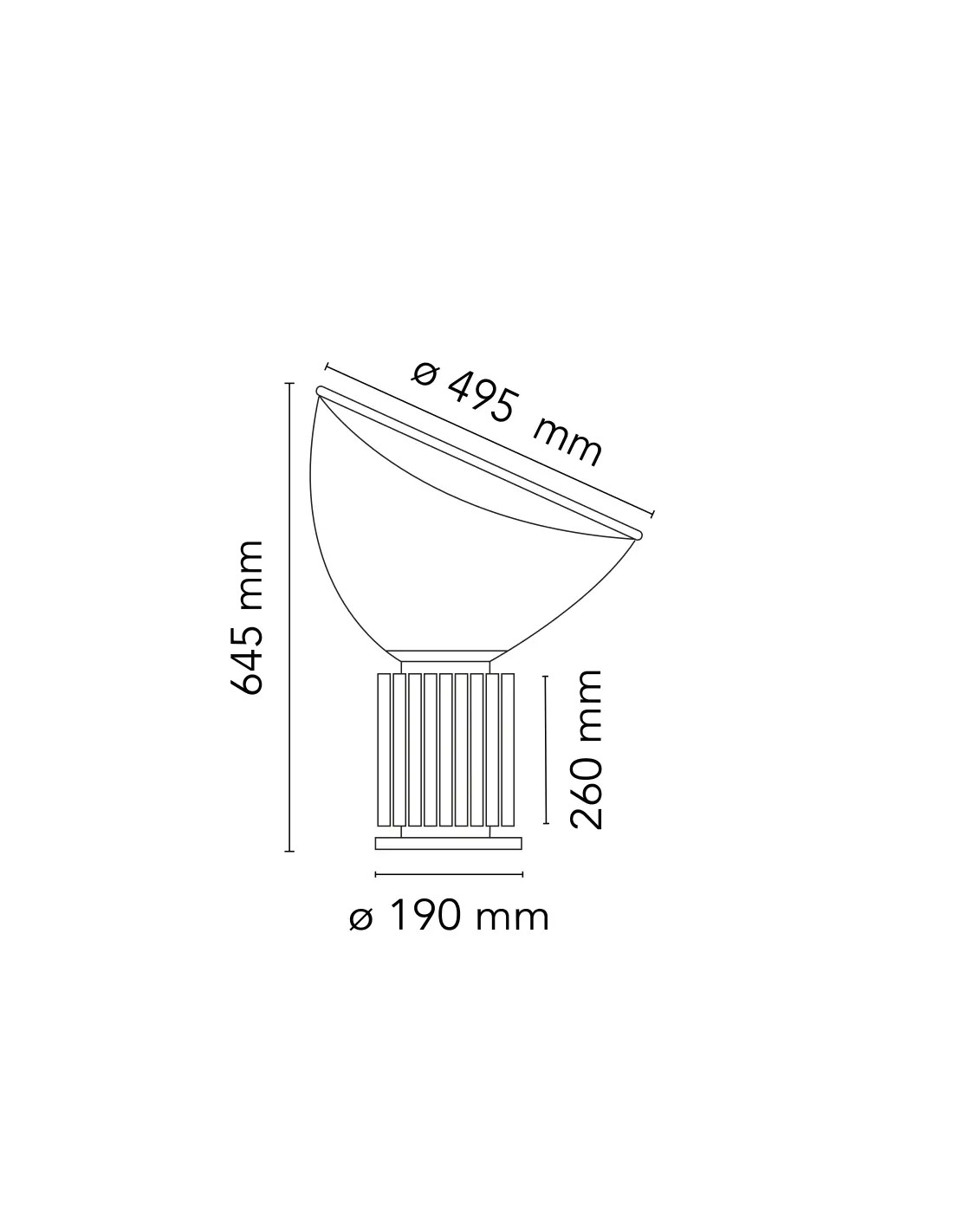 | Dimensioni | H 64,5 cm x Ø riflettore 49,5 cm |