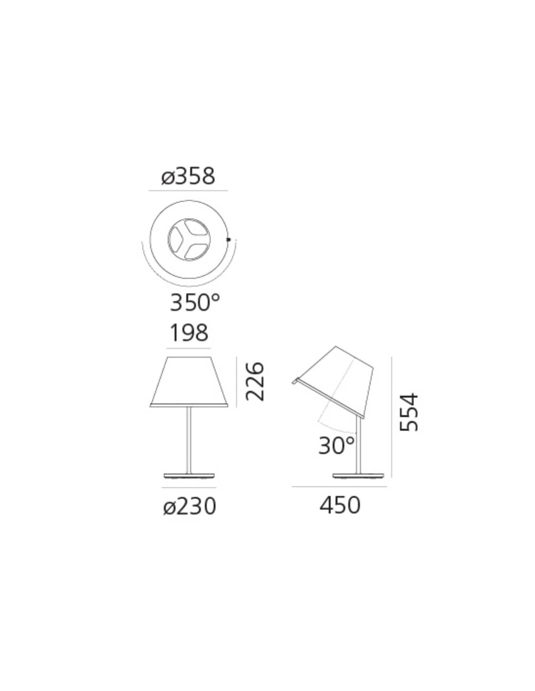 ArtemideIl diffusore, che con matericità e texture caratterizza questa famiglia di lampade, può essere inclinato di 30° e ruotato sul suo asse per orientare la luce per la lettura.