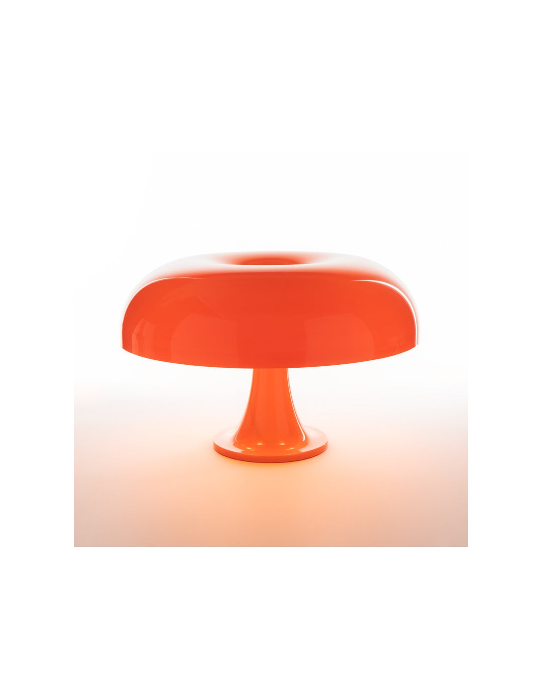 Il segreto del fascino della Nesso risiede nella sua emissione luminosa. Alloggiando quattro lampadine sotto l'ampio cappello, la luce viene proiettata verso il basso sulla base cilindrica, creando un riverbero morbido e piacevole che non abbaglia mai. Disponibile nei suoi colori storici, il Bianco puro e l'iconico Arancio, la Nesso originale Artemide continua a essere uno degli oggetti più desiderati da architetti e collezionisti di tutto il mondo, capace di dialogare perfettamente sia con arredi d'epoca che con i contesti più minimalisti.