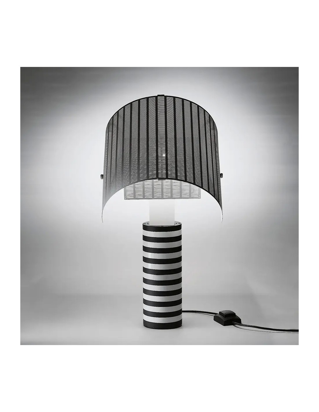 Nata nel 1986, la Shogun di Artemide riflette fedelmente lo stile architettonico di Mario Botta: l'uso di forme primarie e il controllo razionale della luce attraverso volumi solidi. Il corpo della lampada, caratterizzato dal contrasto cromatico bianco e nero, sostiene due "ali" forate che possono essere posizionate a piacere. Questo meccanismo trasforma l'utilizzatore in un regista della propria illuminazione, capace di schermare la sorgente o di farla filtrare attraverso la trama metallica per ottenere effetti chiaroscurali unici.
