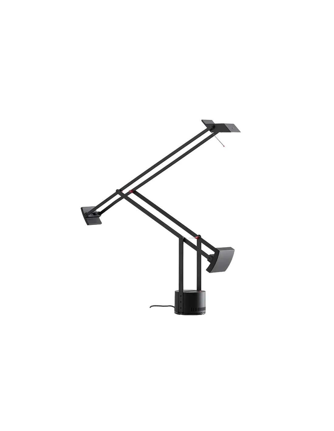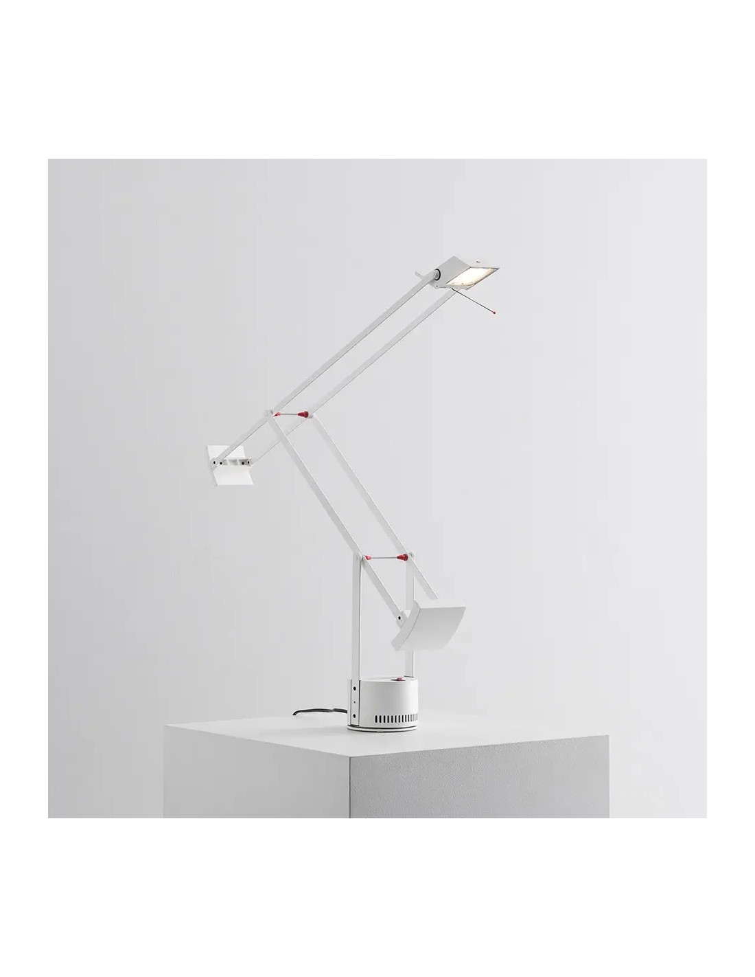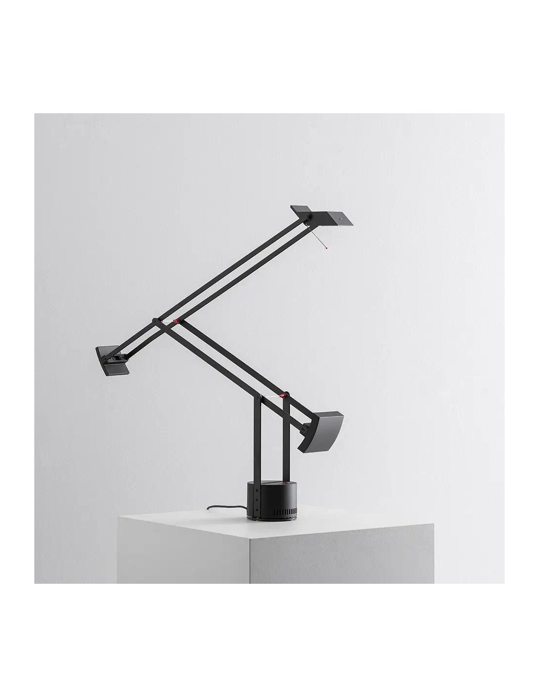 Progettata nel 1972, la Tizio è caratterizzata da un sistema di bilanciamento a bracci contrapposti, che consente un'illuminazione orientabile senza bisogno di molle. La sua struttura minimalista in alluminio e l’uso intelligente di contrappesi permettono una regolazione precisa e semplice della luce.