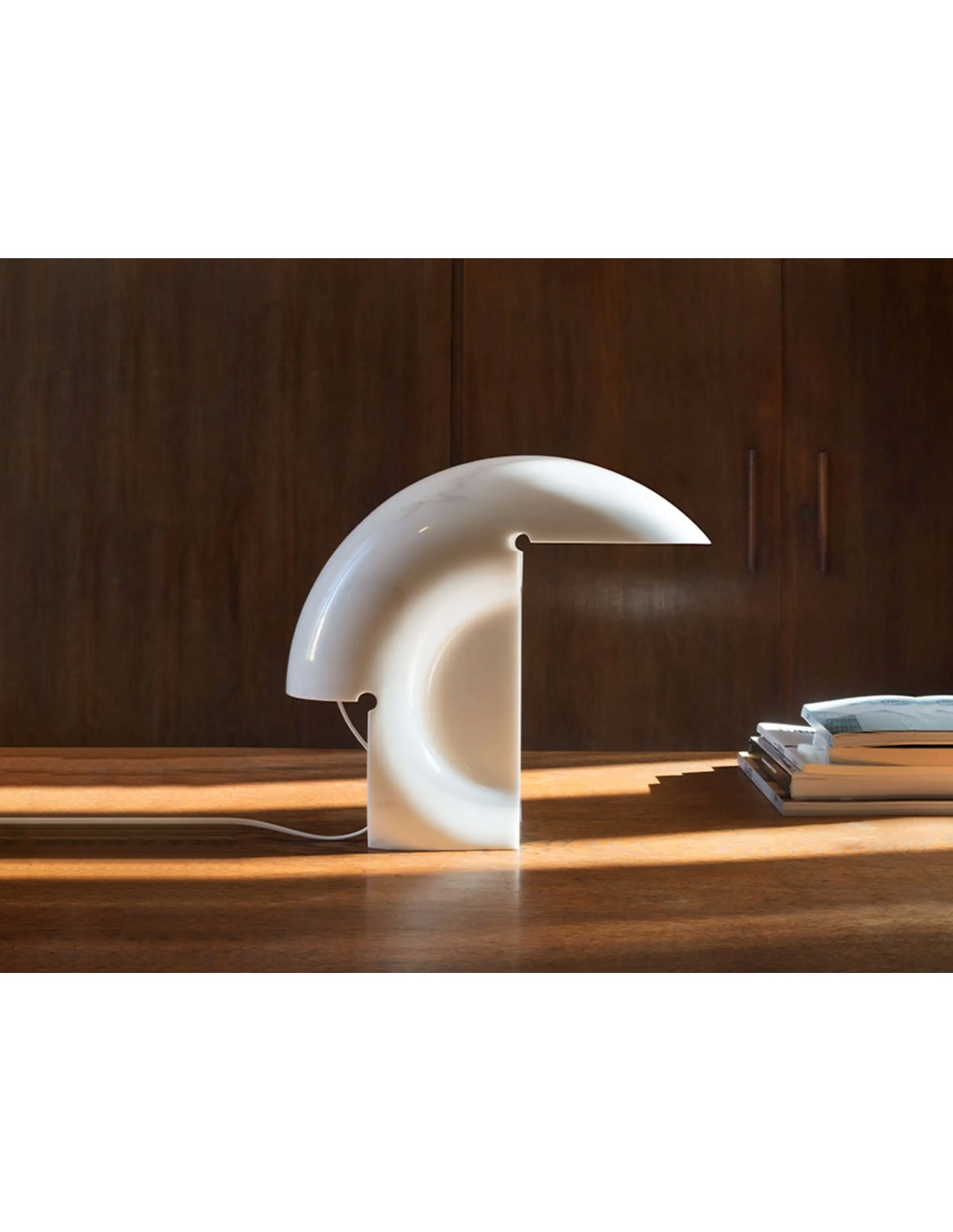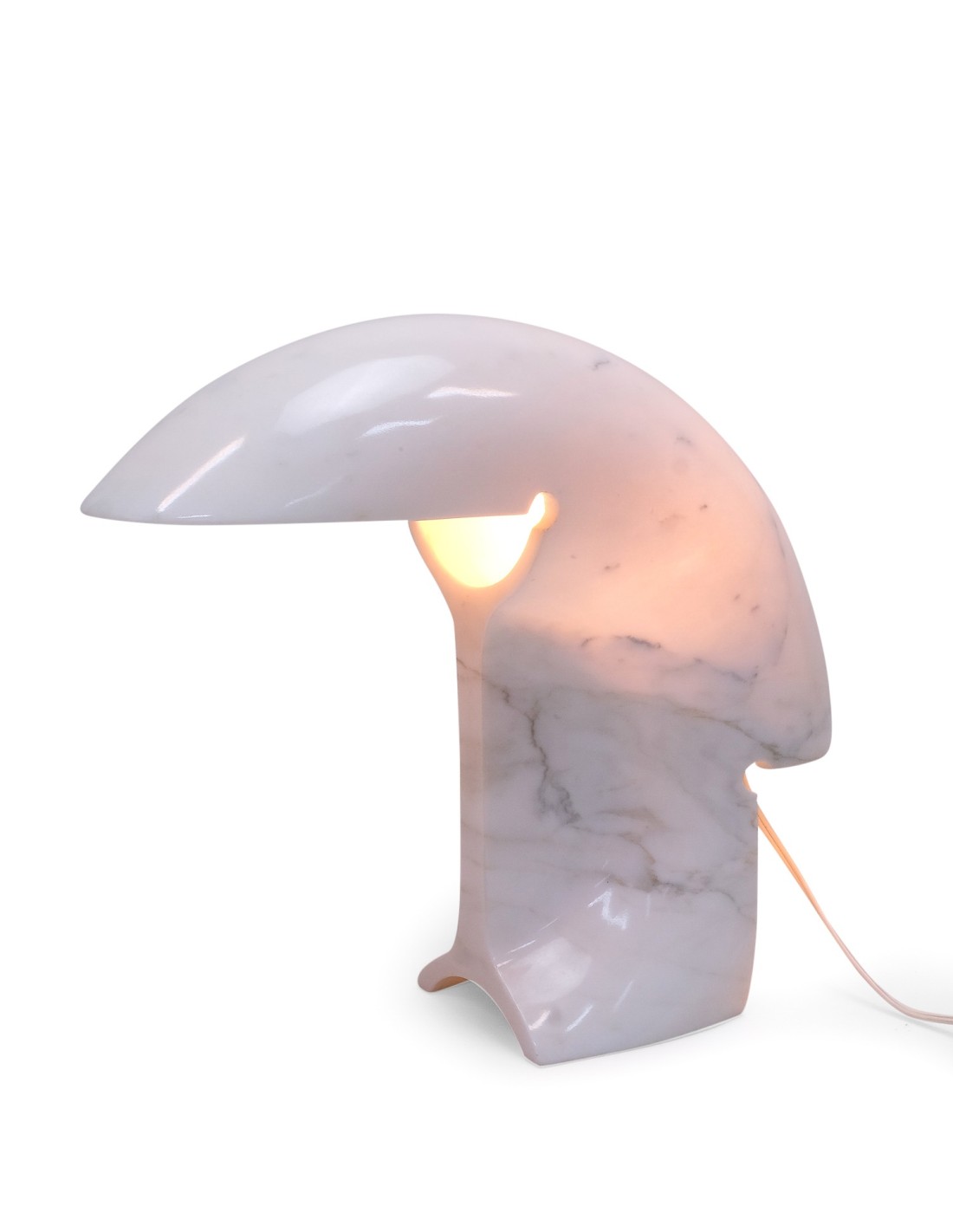 Essendo realizzata in marmo naturale di Carrara, ogni Biagio Flos possiede venature e sfumature irripetibili. La maestria di Tobia Scarpa sta nell'aver saputo domare la pietra per creare una forma che sembra quasi morbida, nonostante la sua natura massiccia. La base e il diffusore si fondono in un'unica geometria architettonica che rende questa lampada un investimento estetico destinato a non passare mai di moda.