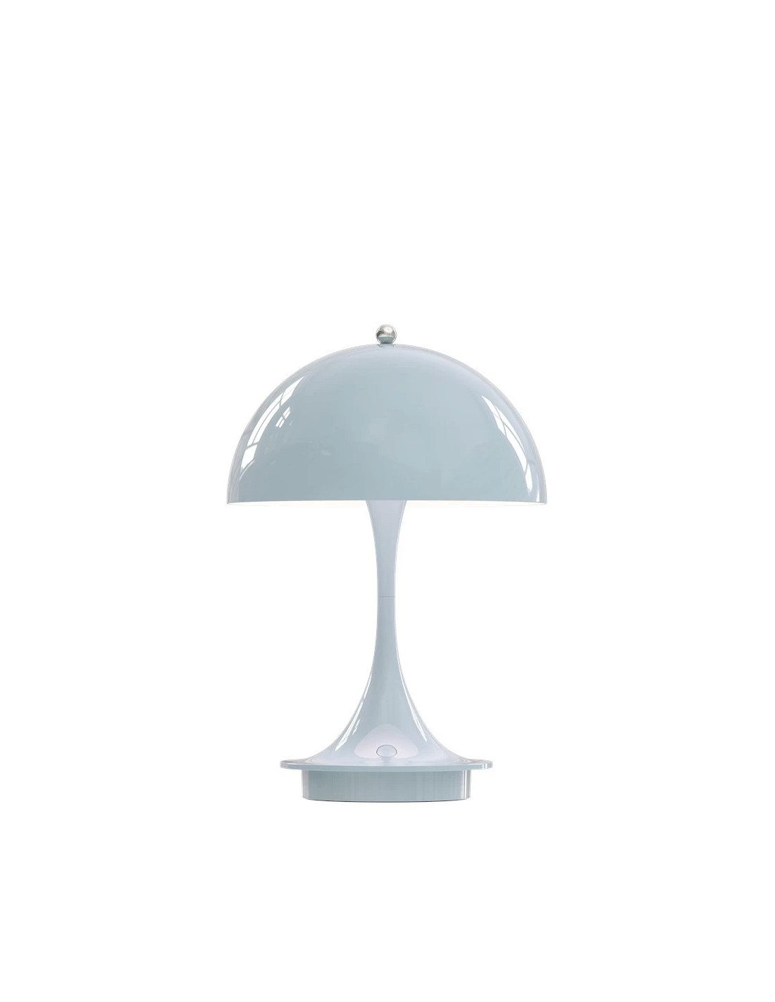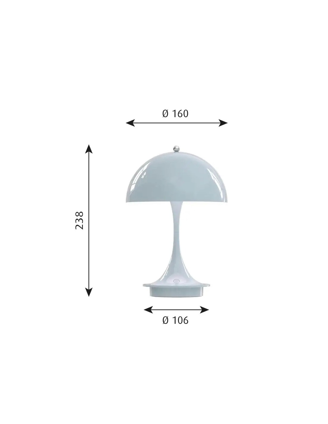 Questa lampada da tavolo portatile emette una luce delicata, confortevole e priva di abbagliamento. Gli schermi in metallo riflettono la luce verso il basso e forniscono una gradevole illuminazione creata dallo schermo interno verniciato di bianco e dal riflesso proveniente dallo stelo a forma di tromba.