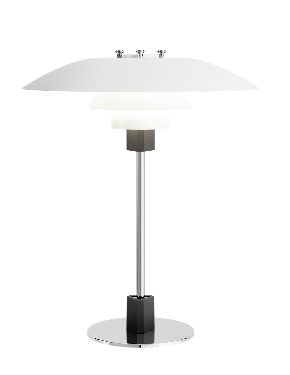 Louis PoulsenL’apparecchio è stato progettato secondo il principio dei tre schermi riflettenti che dirigono la maggior parte della luce verso il basso.