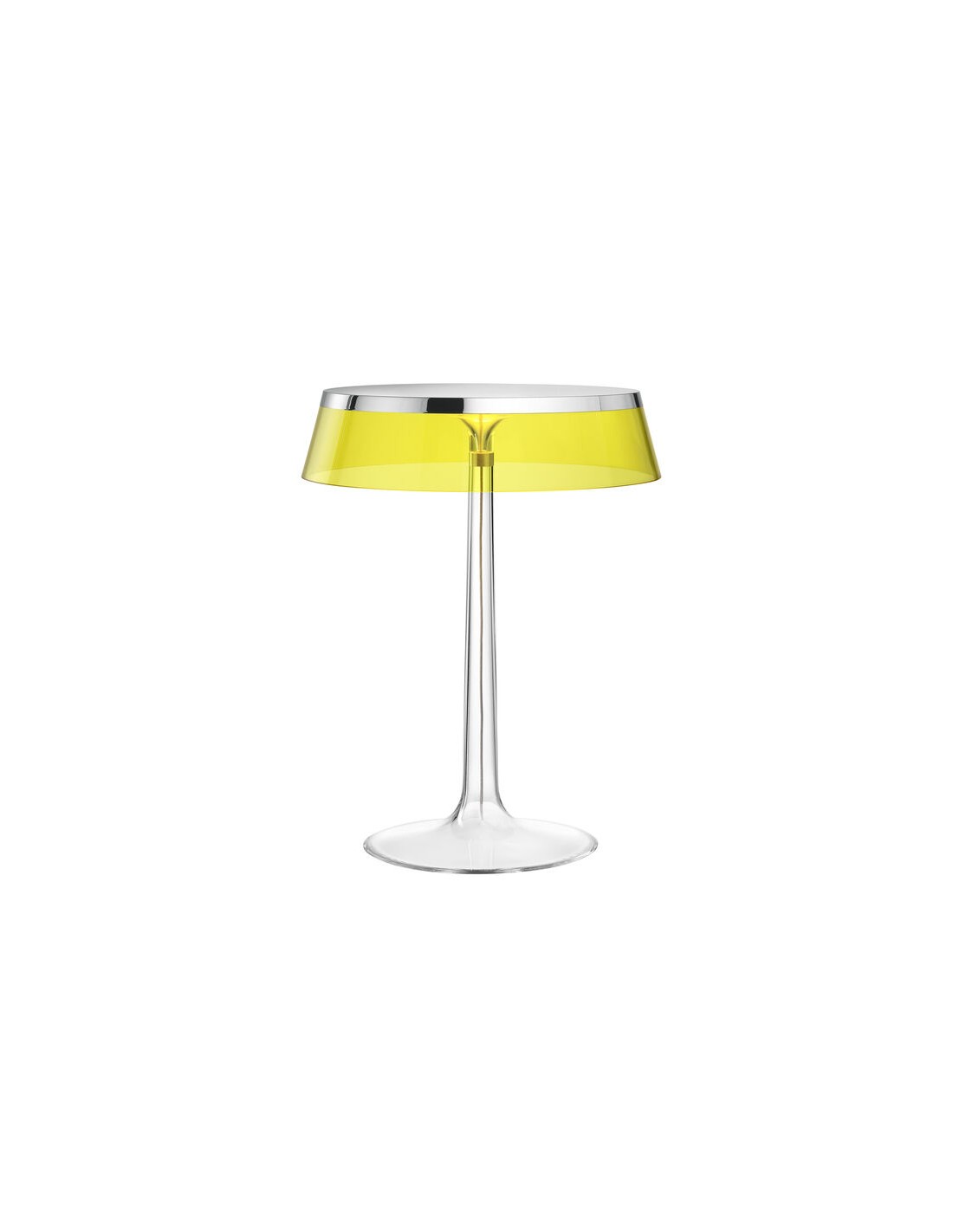 Apparecchio di illuminazione da tavolo a luce diffusa. Base e diffusore in PMMA trasparente stampato ad iniezione. Fonte luminosa con tecnologia Edge Lighting. Cavo elettrico lunghezza utile 200 cm, con interruttore dimmer che garantisce le funzioni ON/OFF e regolazione del flusso luminoso 10-100 percento. Power supply su spina con plug intercambiabili.