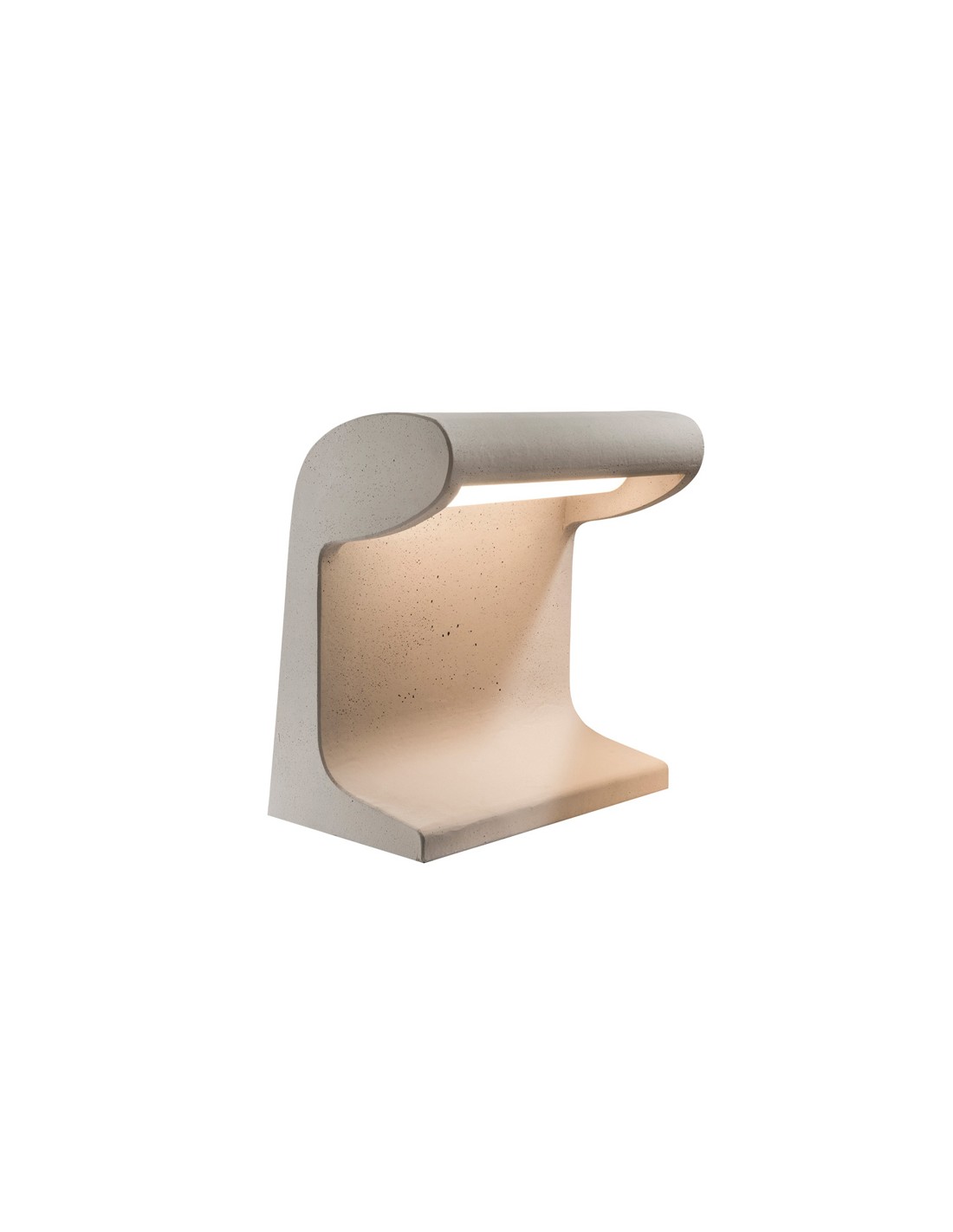 Il cemento grezzo e spartano viene accostato a una sorgente LED integrata, combinando diversi volumi enfatizzati dalla luce.