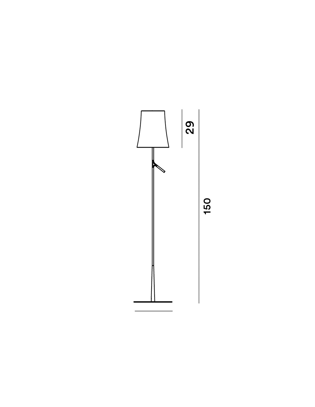 empre completamente monocromatica, dal paralume alla base, per una caratterizzazione decisa e senza compromessi. Anche nella versione da terra è facilmente ambientabile in una molteplicità di situazioni. Al fianco di un letto posizionato in centro stanza, accanto ad una poltrona o ad un divano in zona living, o in qualsiasi altro habitat domestico, Birdie si inserisce con naturalezza e accompagna la vita quotidiana con una presenza piacevolmente elegante. Lampada da terra e da lettura a luce diffusa. Base in lega di zinco pressofusa e stelo in acciaio entrambi verniciati a liquido.