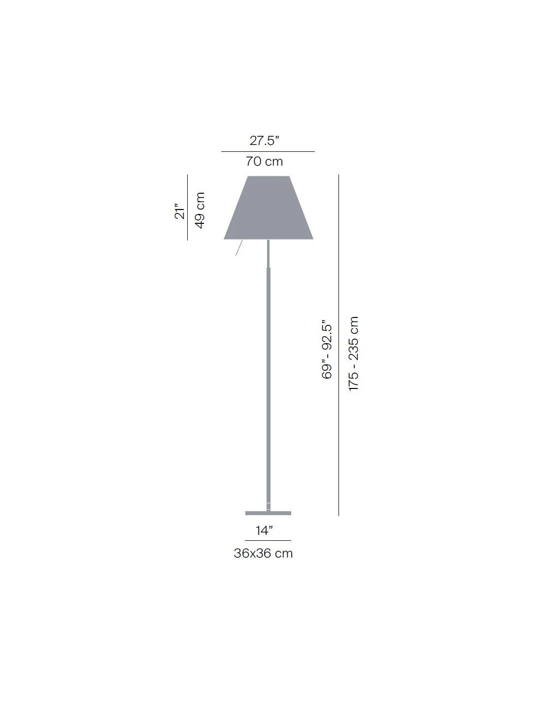 LuceplanTradizione e innovazione si incontrano anche nella declinazione da terra di questo classico di Luceplan in formato maxi. Stelo in alluminio e paralume in policarbonato concorrono a valorizzare i grandi spazi con la proverbiale leggerezza e l’intensità luminosa di questa lampada.