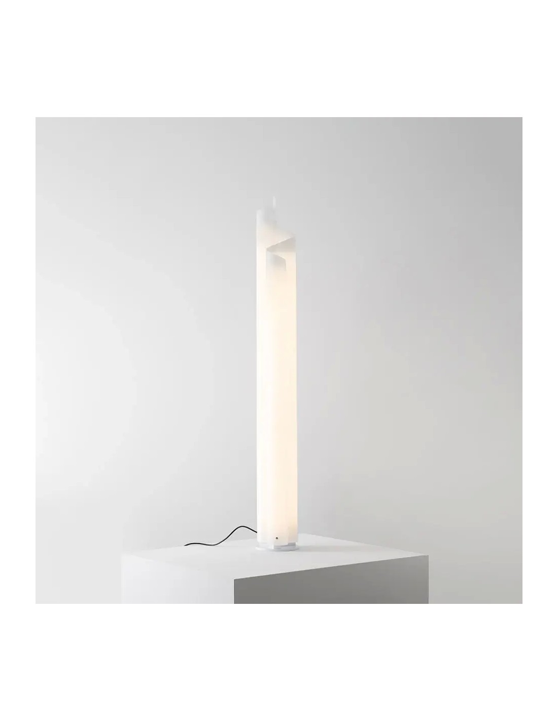ArtemideBase in metallo verniciato bianco; struttura/diffusore in metacrilato opalino bianco curvato a caldo.