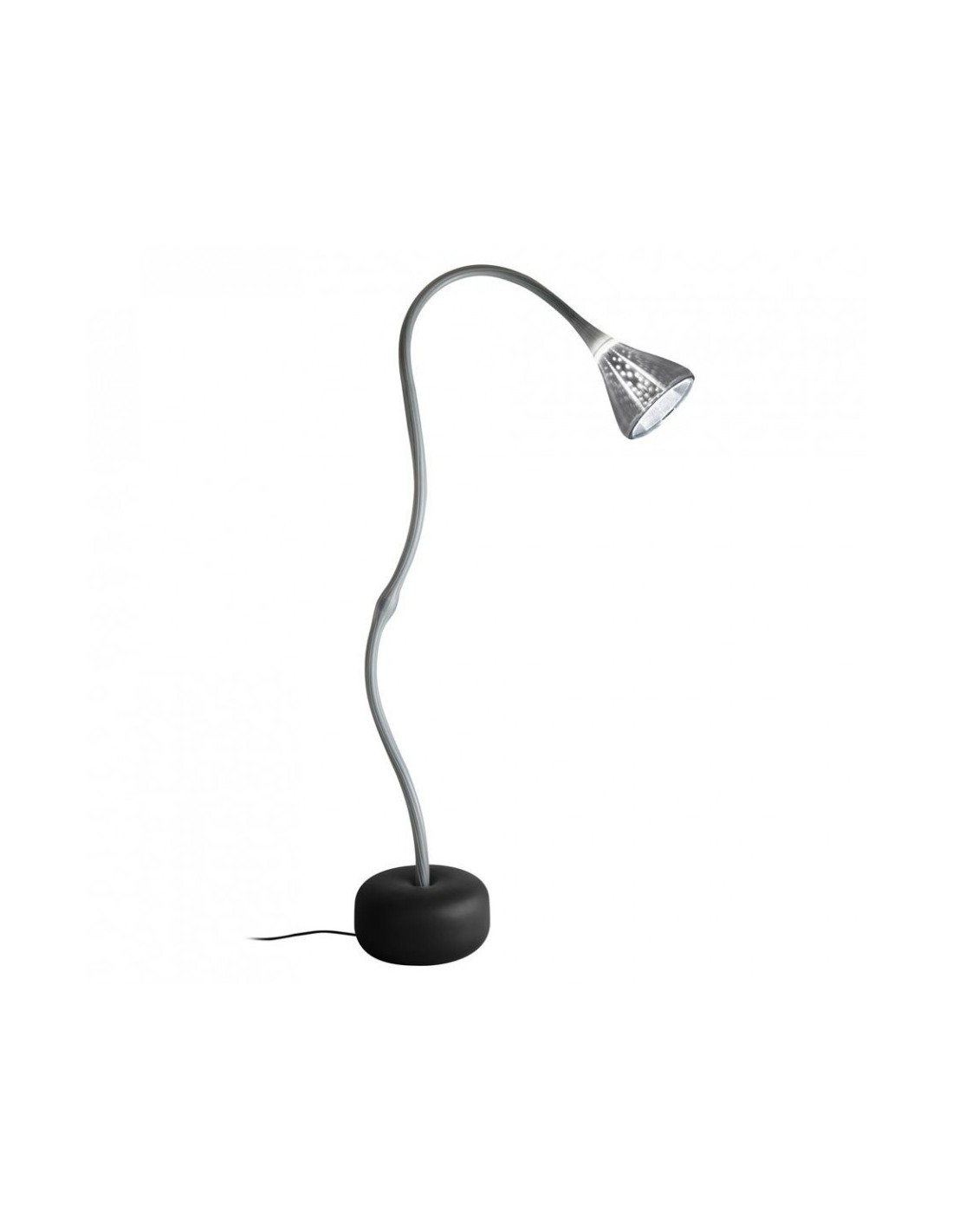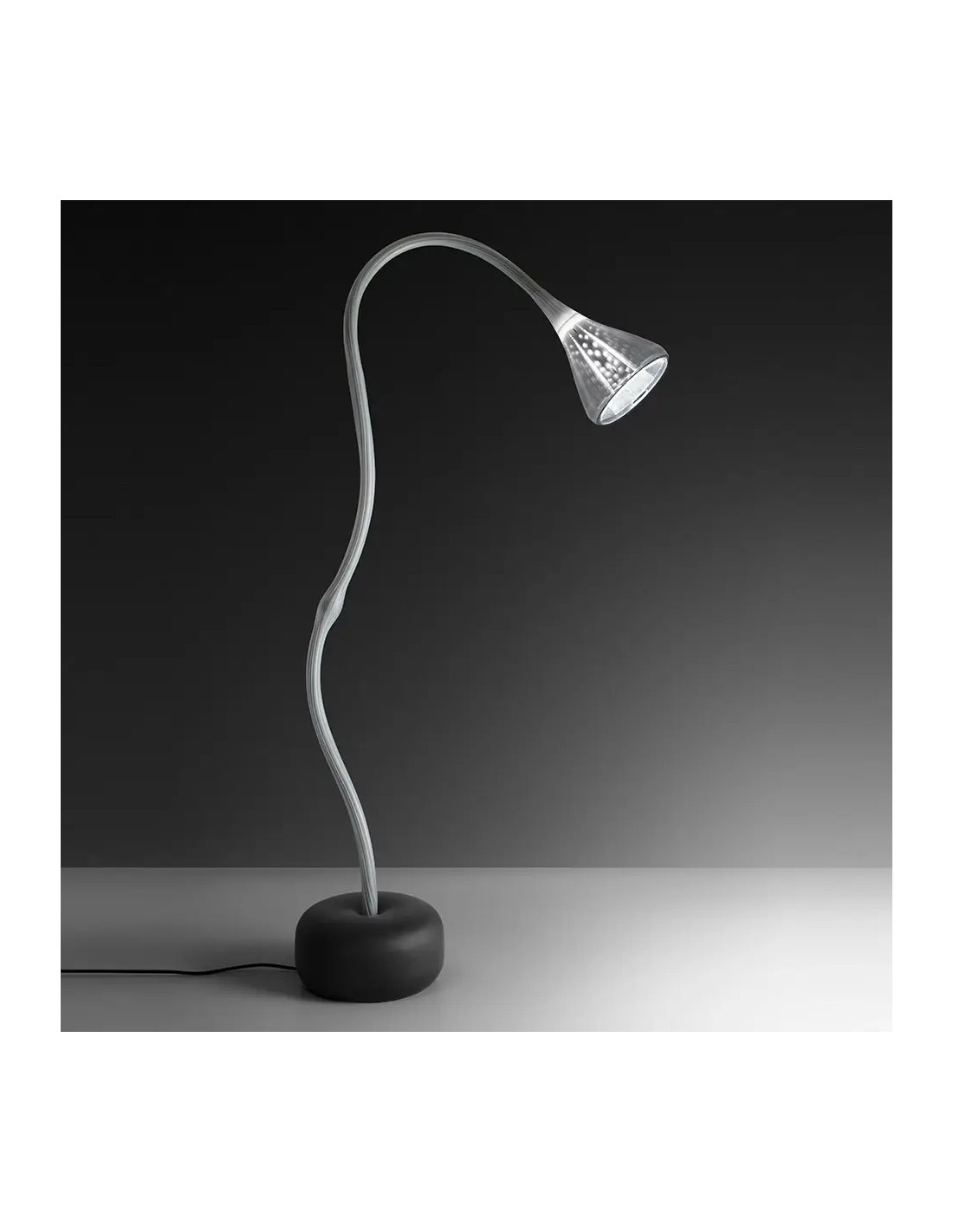 ArtemideBase in acciaio verniciato effetto soft touch; stelo rivestito da una guaina di silicone platinico naturale (anti ingiallimento); diffusore in policarbonato trasparente verniciato effetto gomma; lente trasparente; riflettore interno in alluminio speculare con microforature irregolari.